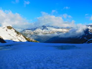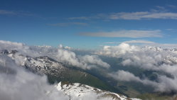 Die Sommerferien haben begonnen für die einen, ab in den Süden, am 5.00 Uhr schon 4 Kilometer Stau auf der Gotthard Autobahn, zum Glück bin ausgewichen entlang der Hauptstrasse. Aber noch rechtzeit am 6.30 Uhr war mein Tourenstart beim Furkapass, es war aber wie meistens ziemlich Wolkenverhangen wenn ich auf Tour gehe, die Temperaturen waren 10 Grad, die Miltärstrasse war leider schon Schneefrei, beim ersten Bach bin ich hochgstiegen bis zum Bergschrund, die Spalten sind noch gut eingeschneit, beim Fussaufstieg zum Grat rechts zurzeit Steinschlägig,Pickel und Steigeisen waren von Vorteil, der Schlussteil zum Gipfel war schon Schneefrei, die Gipfelrast war heute einmal recht lange es waren tolle Wolkenspiele zu beobachten, die Abfahrt war oben recht gut zum fahren, unten dann der Sündige Ackerschnee von den vielen Regentagen.