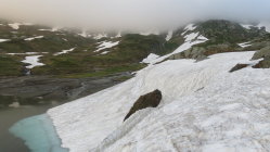 Abfahrt ohne Ski abziehen bis Schneezunge Totensee