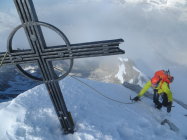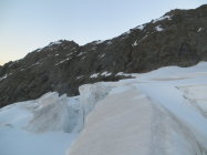Bei zunehmender Ausaperung wird's weniger lustig und die Kinfelsen sind eh vorzuziehen. Die NW-Flanke ist zurzeit einfach der Hammer! Achtung: auch in der Flanke gibt es einige Brücken, die mit Vorsicht zu begehen sind - gehen am langen Seil auch im steileren Gelände macht abschnittsweise Sinn...