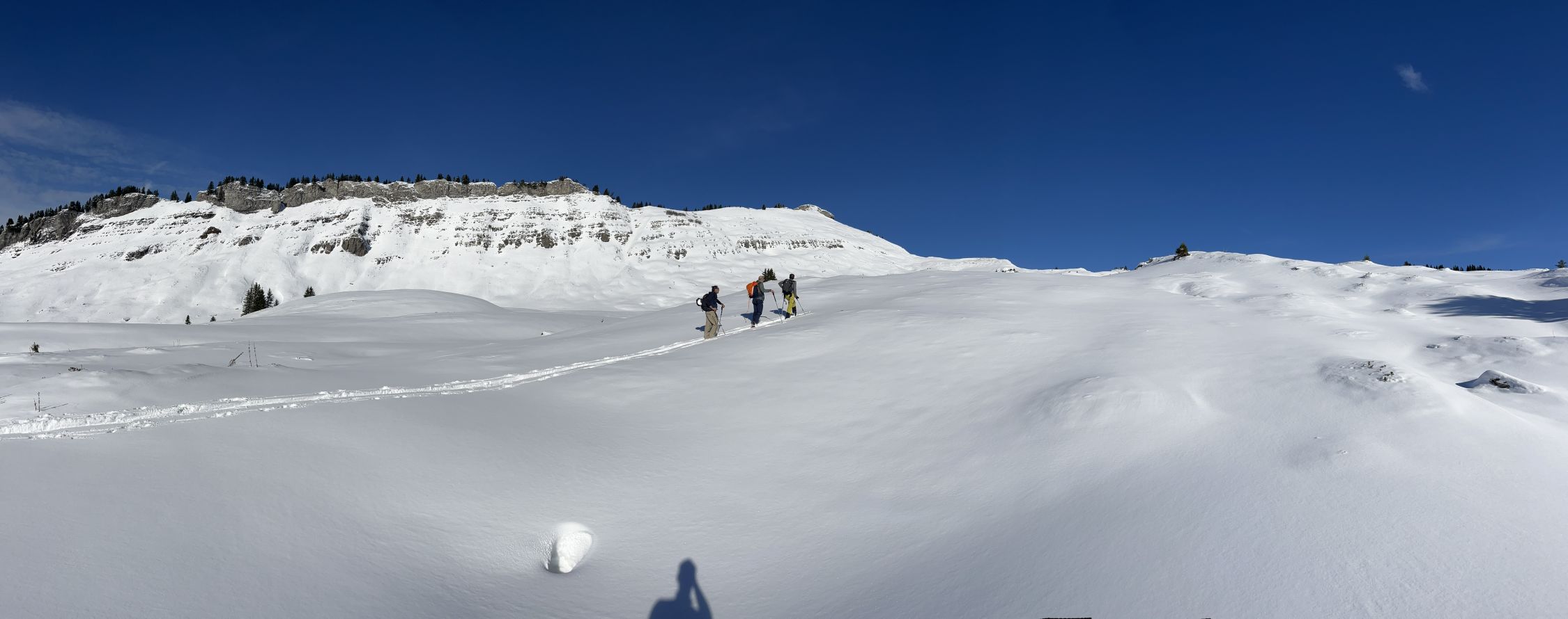 Wird mit kommendem Schneefall sicher besser - Gipfelhang ist Schneebrettgefährdet.