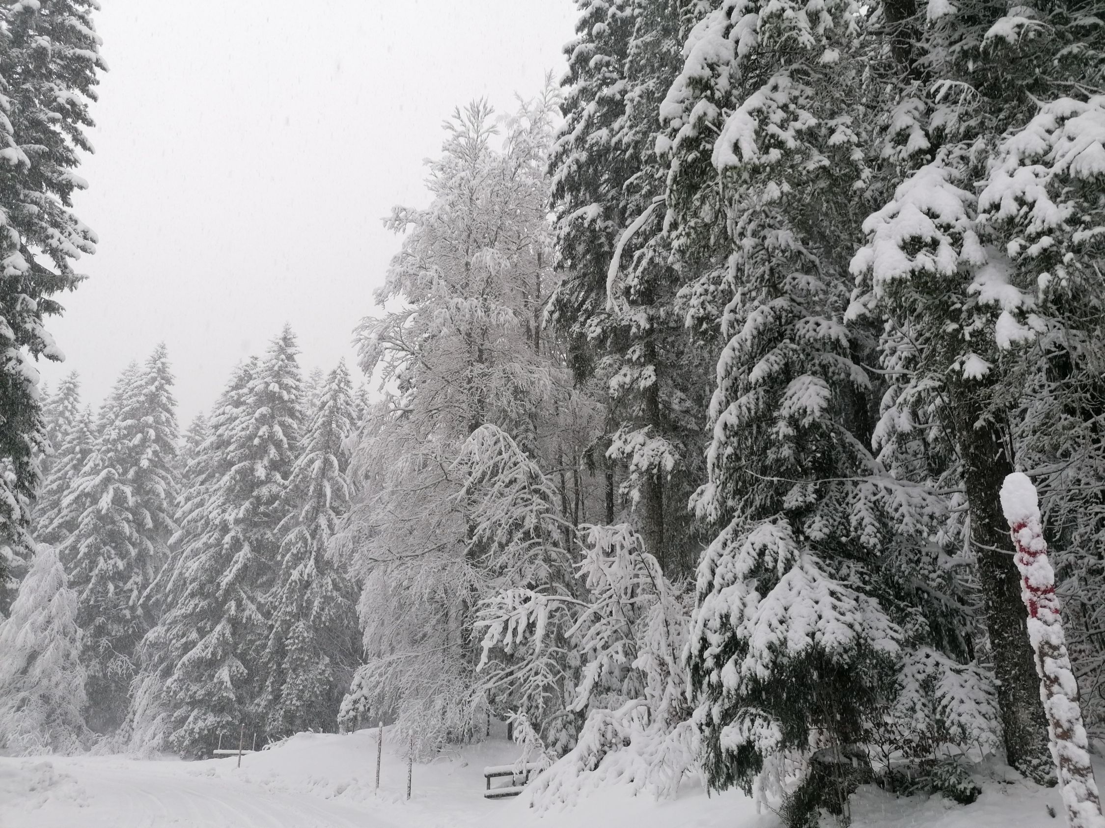 Es hatte 20cm bis 40cm frischen Pulverschnee auf einer guten Unterlage. Der Wald, die Bergwelt präsentierten sich als Märchenlandschaft. Es war ein Traum!