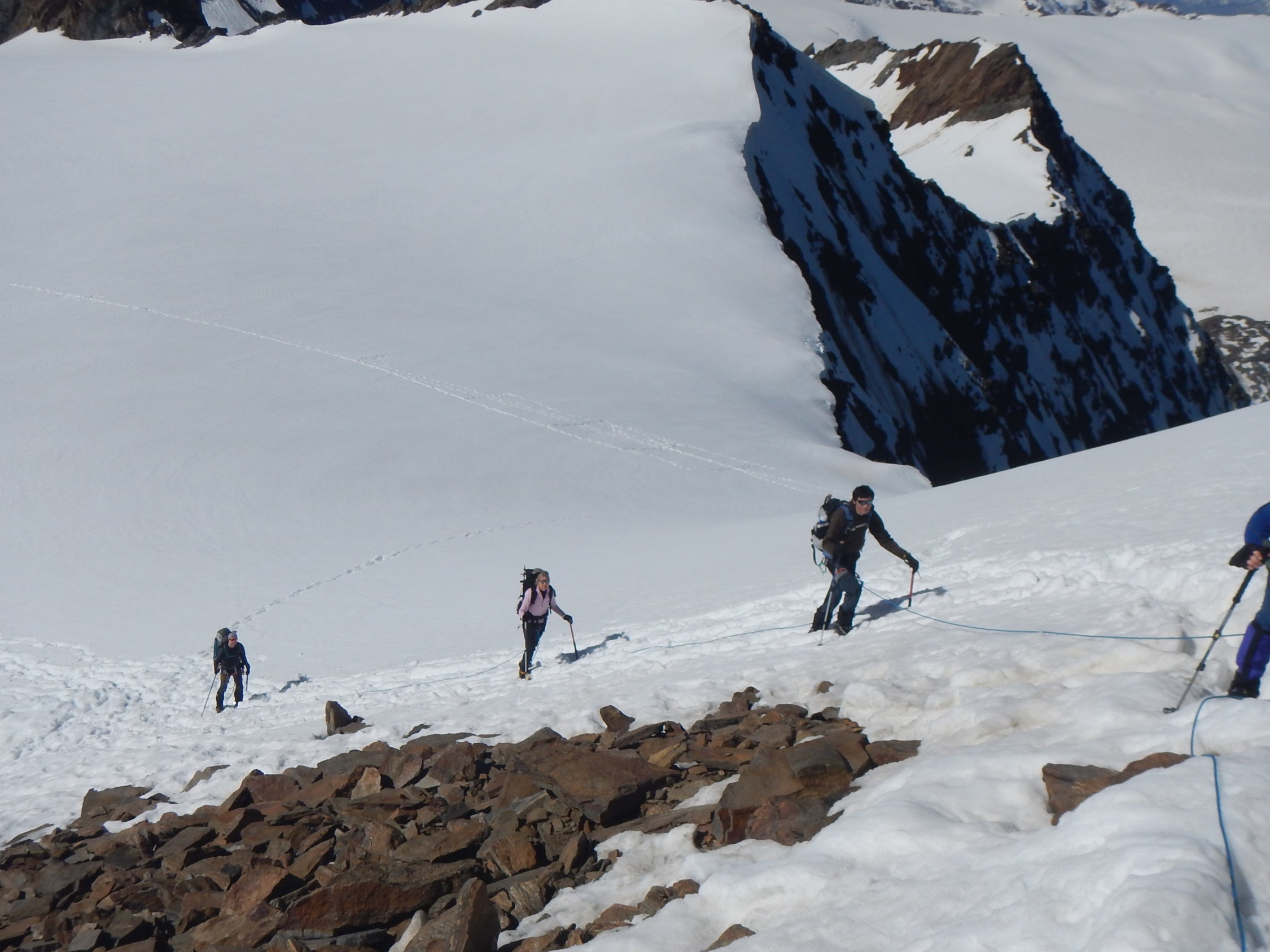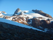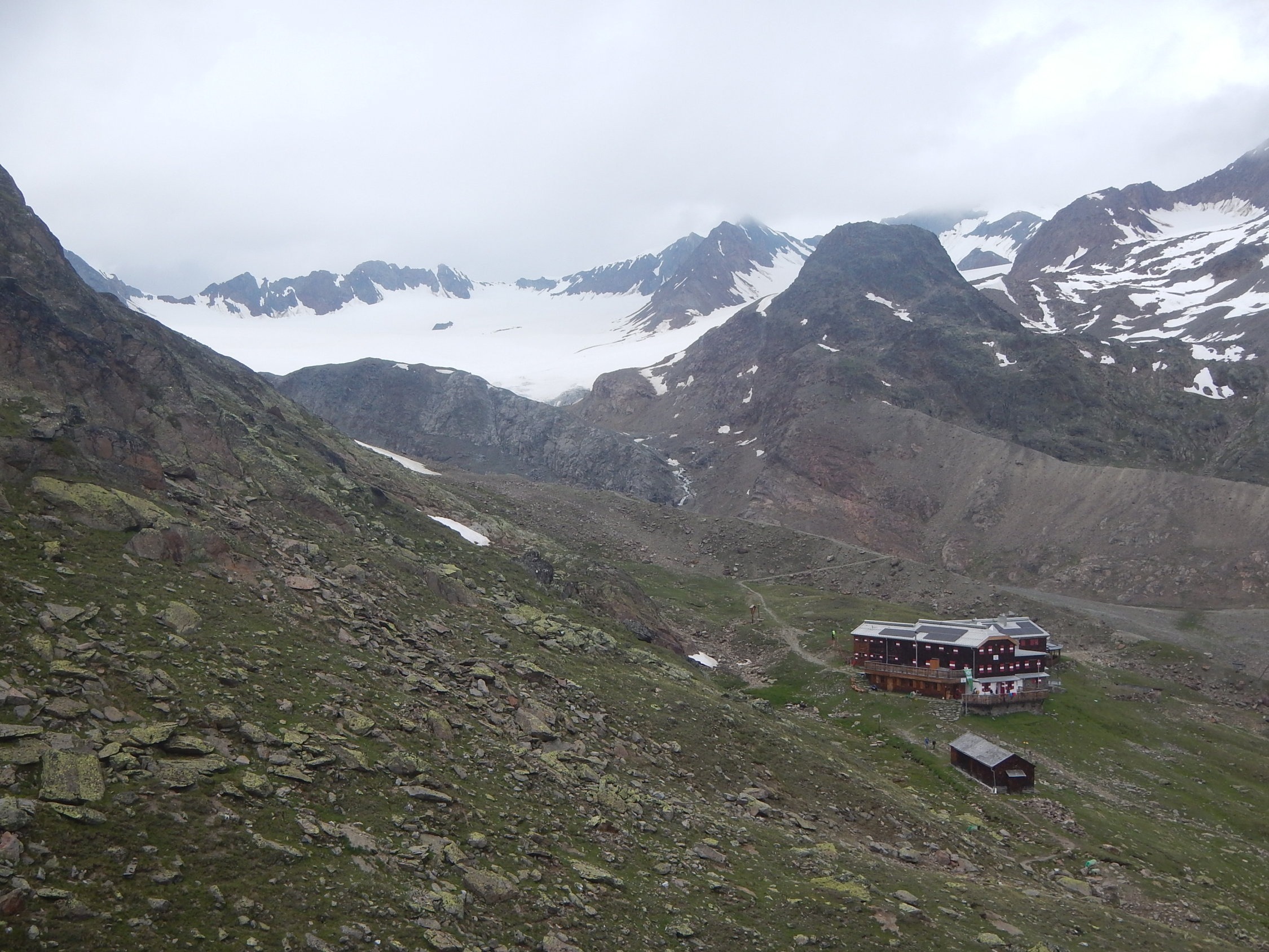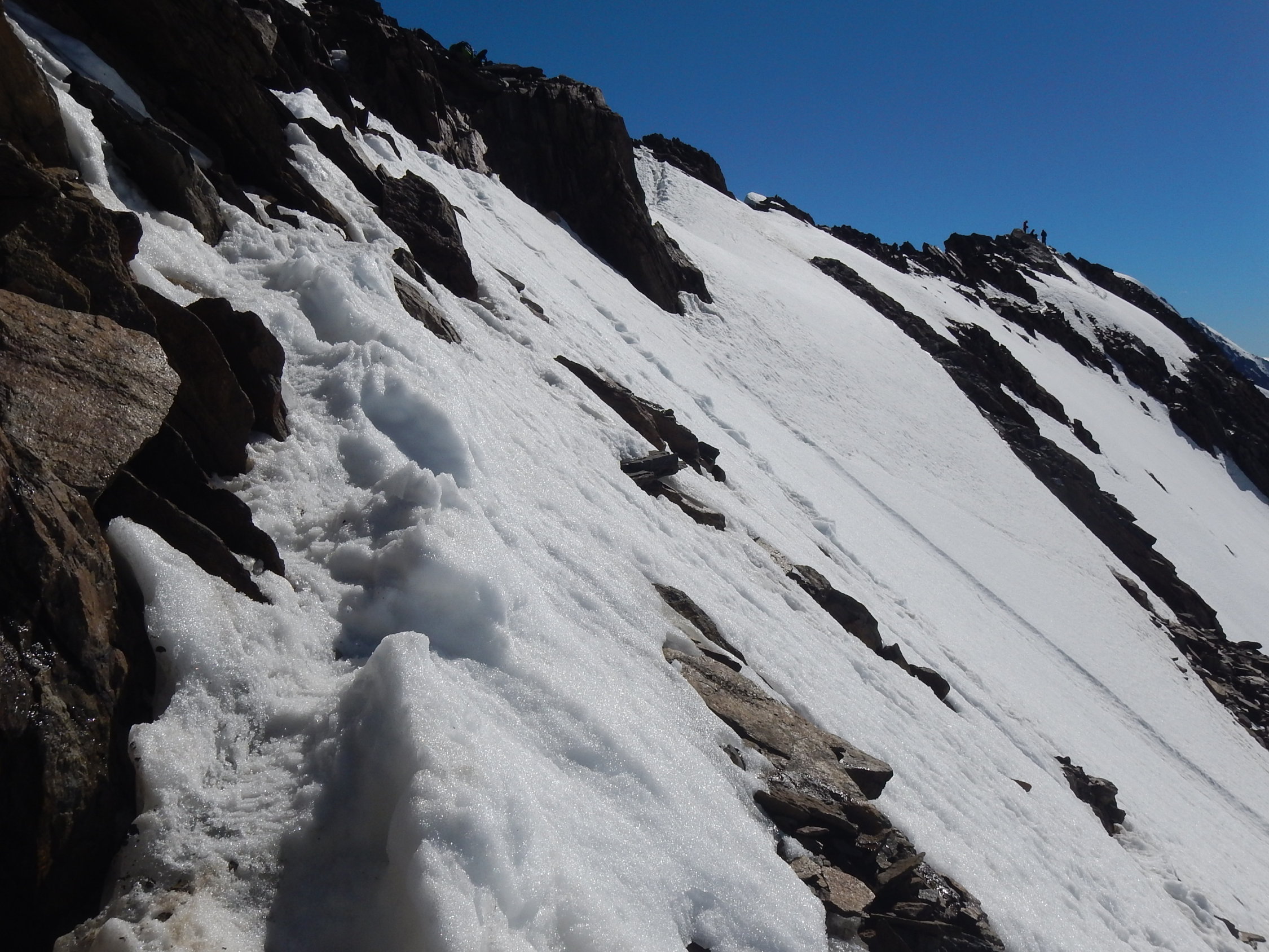 Normalweg ab Vernagthütte Ab Vernagthütte auf Mörane auf gutem Weg aufsteigen, bei Schild "Wildspitze" rechts abzweigen und auf Wegspuren Richtung Gletscher. Felsbereich links umgehen oder in dessen linkem Bereich aufsteigen. Gletscherhänge bis ca. 30 ° Neigung aufsteigen, oben flacher bis zu leichtem Gipfelgrat