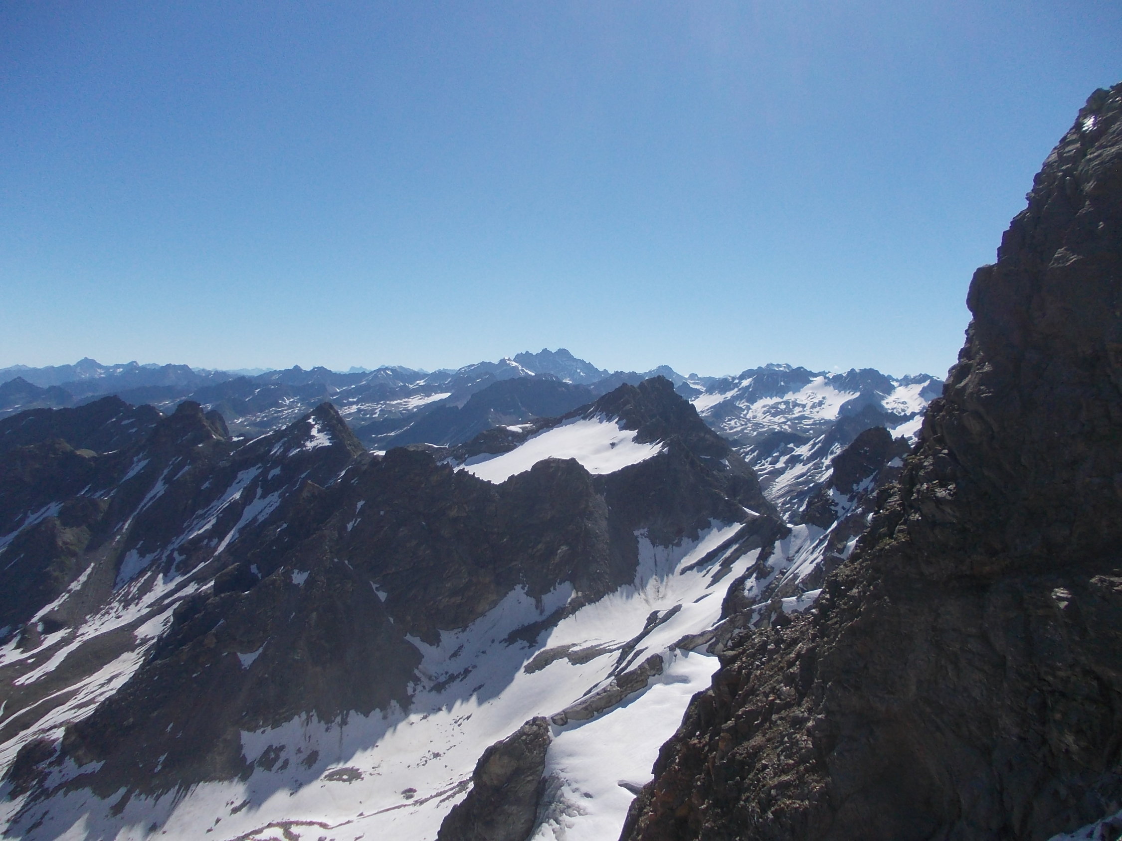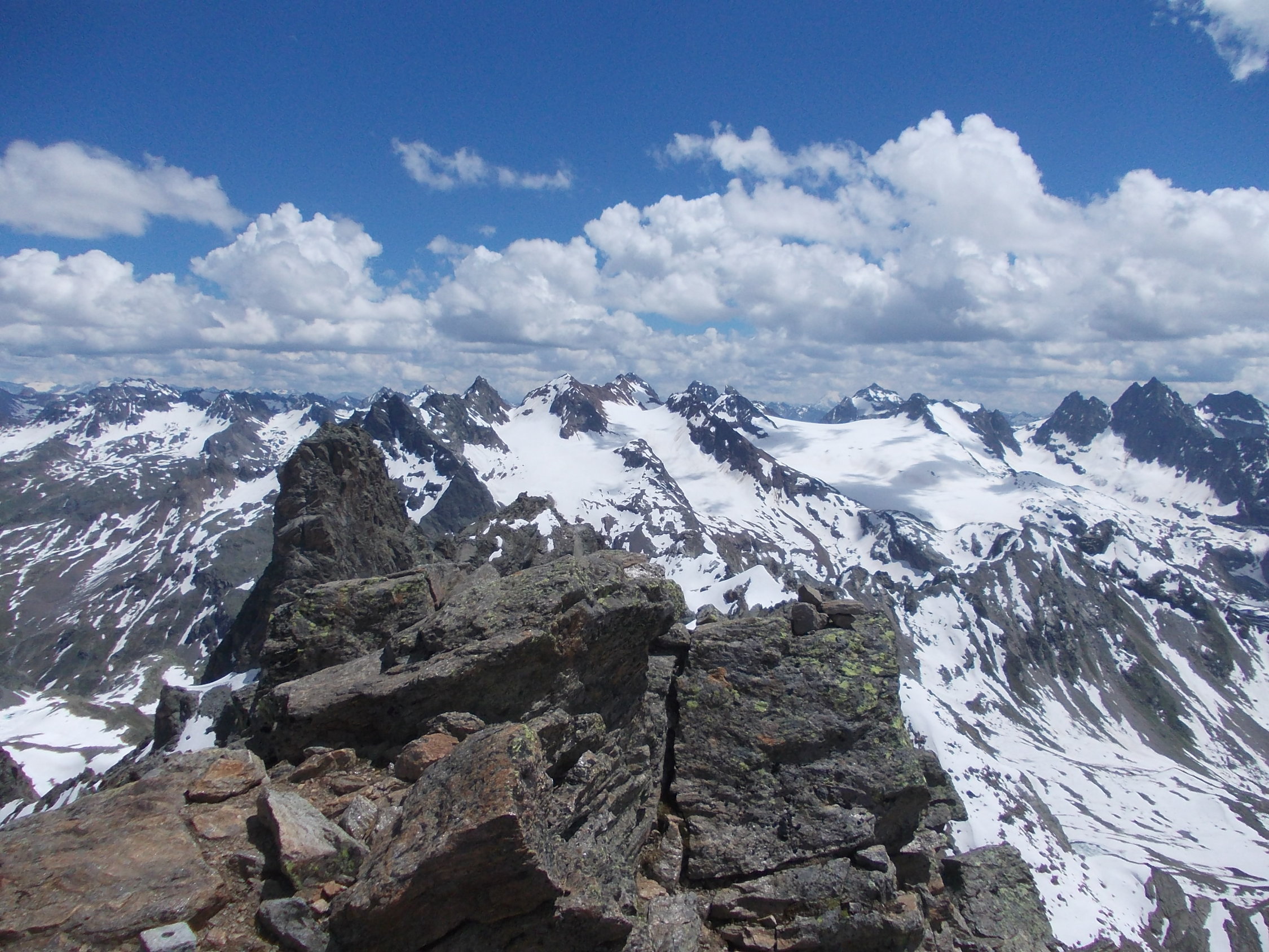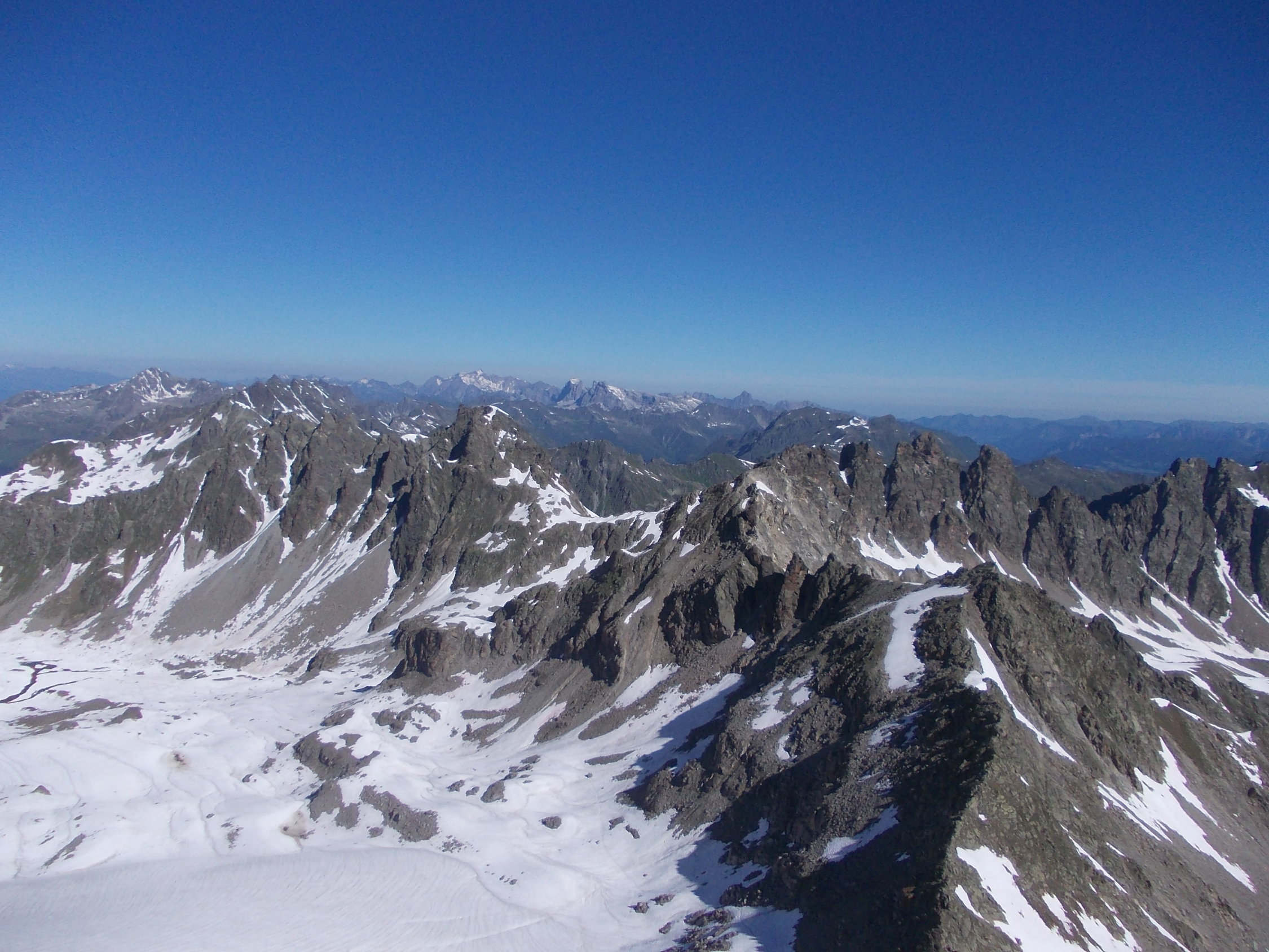 Bombenwetter mit phänomenalen Fernsichten. Die vorhergesagte nachmittägliche Gewittergefahr äußerte sich erst abends durch verstärkten Wolkenaufzug, aus dem heraus jedoch gerade mal ein paar Tropfen entwichen. Ab unterhalb Schottensee noch reichlich Schnee im Zu- und Abstieg, der aber selbst spätnachmittags noch trug.