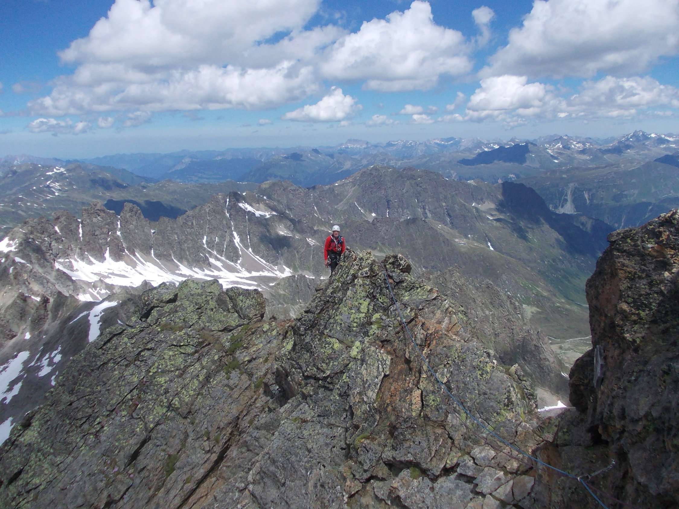 Aussichtsreiche, luftige und lange Gratkletterei in überwiegend gutem und festem Gneis. Während auf der Litzner-Seehorn-Überschreitung wohl einige Seilschaften zugegen waren, hatten wir den NW-Grat für uns.