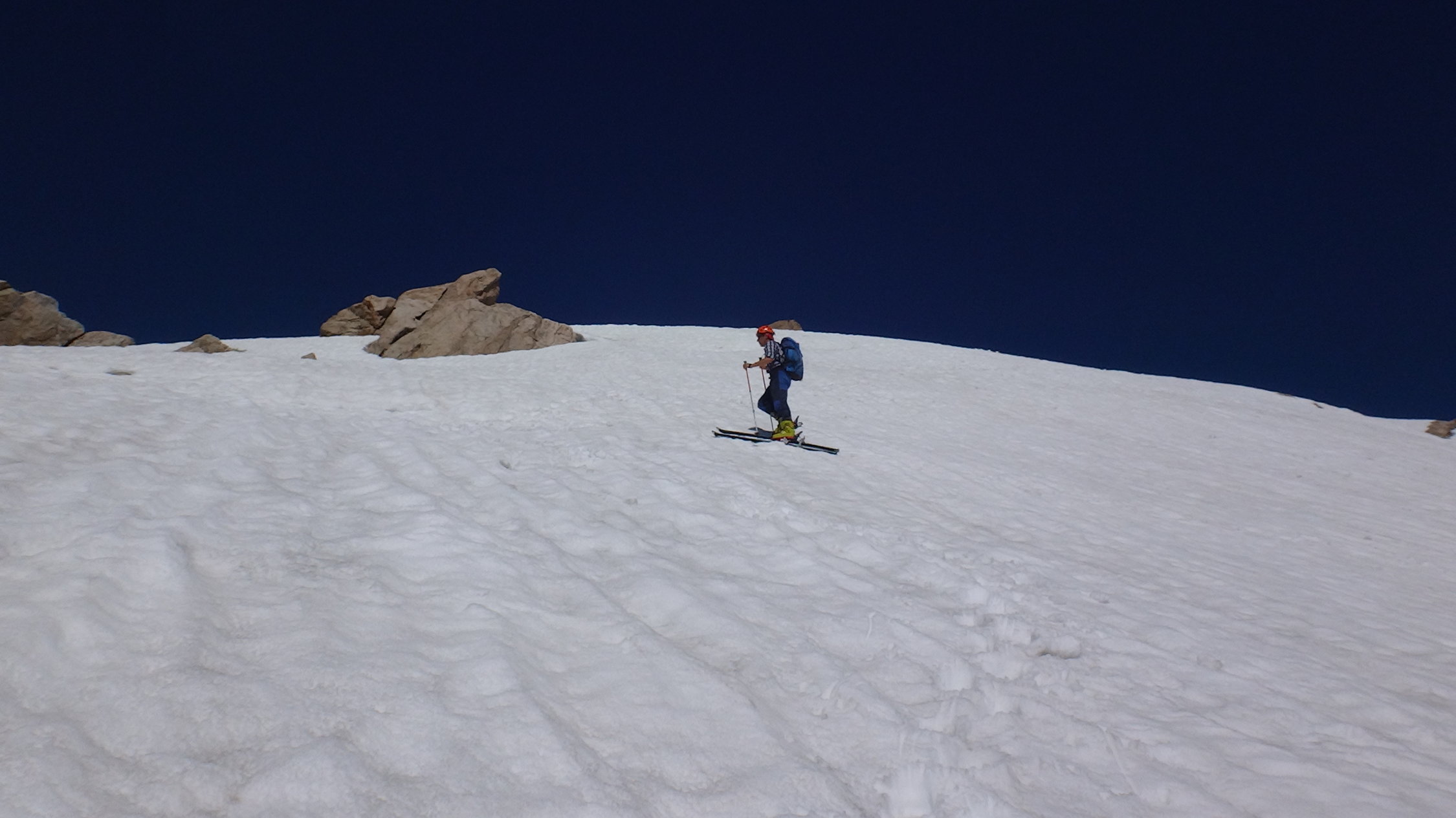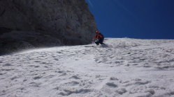 Schnee nur 5 min. von Parkplatz, dann gut ab punkt etwa 2600m.u.m. 30-50m steiltrage. dann gut bis gipfel.