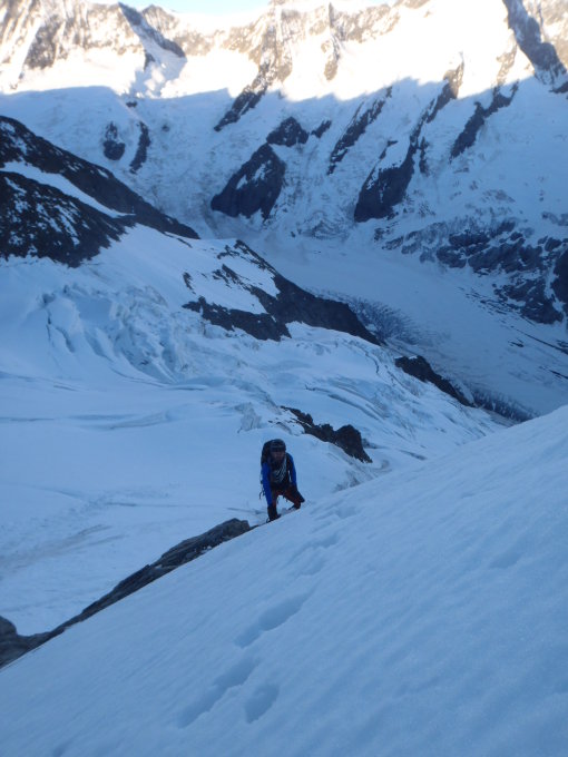 Sind im Abstieg mit zwei Schweizer als 5er-Seilschaft über den Gletscher abgestiegen...