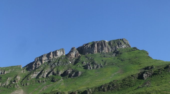 Der Steig zieht zum großen Teil über den Felsgrat oberhalb senkrechter Nordabstürze des Bergs und bietet Panorama- und Tiefblicke zur abwechslungsreichen alpinen Kulisse mit dem nahen Titlis im Rücken.