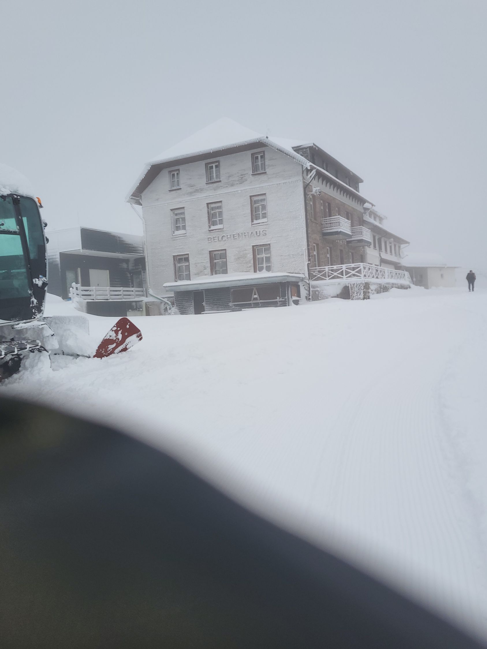 Kalte Bise, Rast im Belchenhaus sehr willkommen.