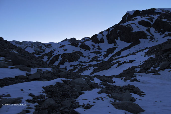 Doch wohin des Weges?? Das war die Frage am Abend. Der Rhonegletscher war ja schon weit hinauf blank, wie in den Einträgen zu lesen war. Da der Rhonegletscher doch sehr Südlich ausgerichtet ist, hält der Neuschnee bestimmt nicht lange auf dem blanken Gletscher.