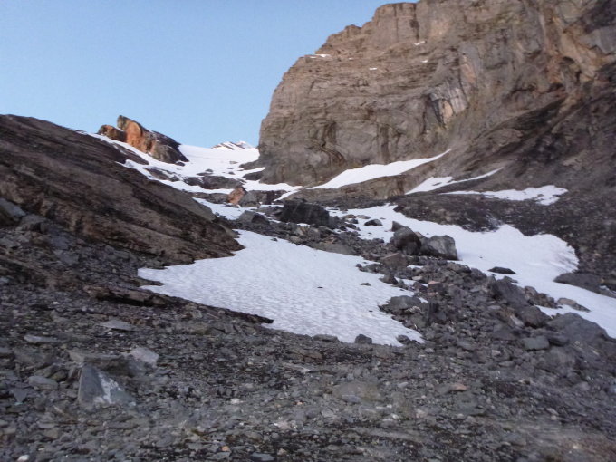 Mit zunehmenden Ausaperung wird der Zustieg zum Gletscher und zum eigentlicher Grat unterhalb P.3320 sicher mühsamer. Der Gipfelgrat hingegen eher einfacher, besonders im Abstieg.
