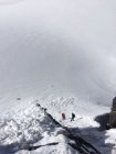 Der Neuschnee der letzten Woche machte die Sache anstrengender (Spuren) und schwieriger. Nur wenige Bohrhacken bzw. Stände waren erkennbar. Fast alle Abseilstände waren aber frei von Schnee.