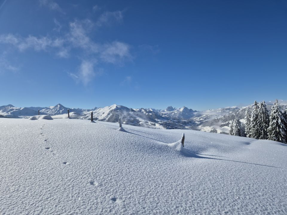 Unten ab Zweisimmen wenig,(20 cm) doch genug Schnee... weiter schnell zunehmend ... auf 2000m 60 - 80 cm feinster Pulver.