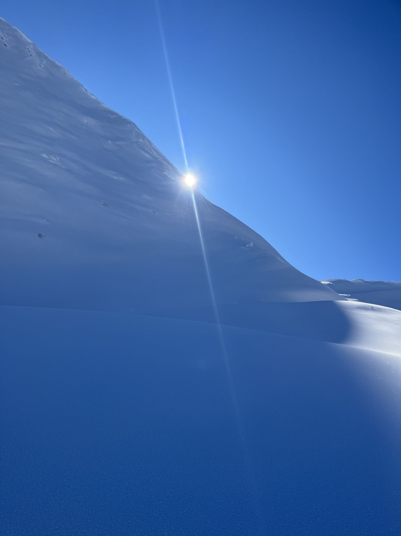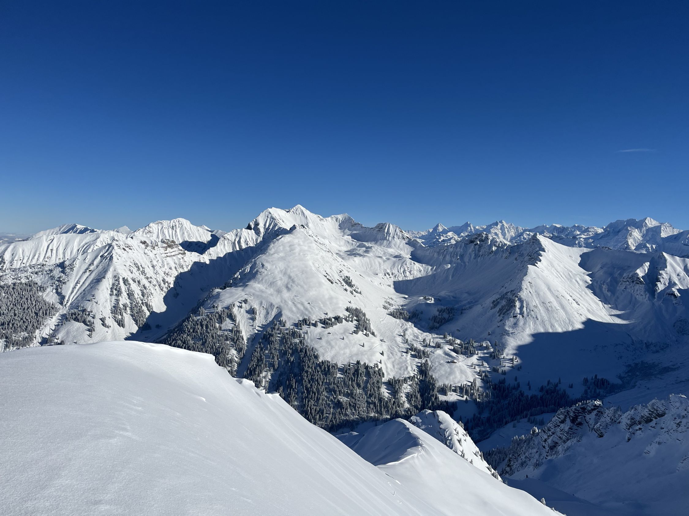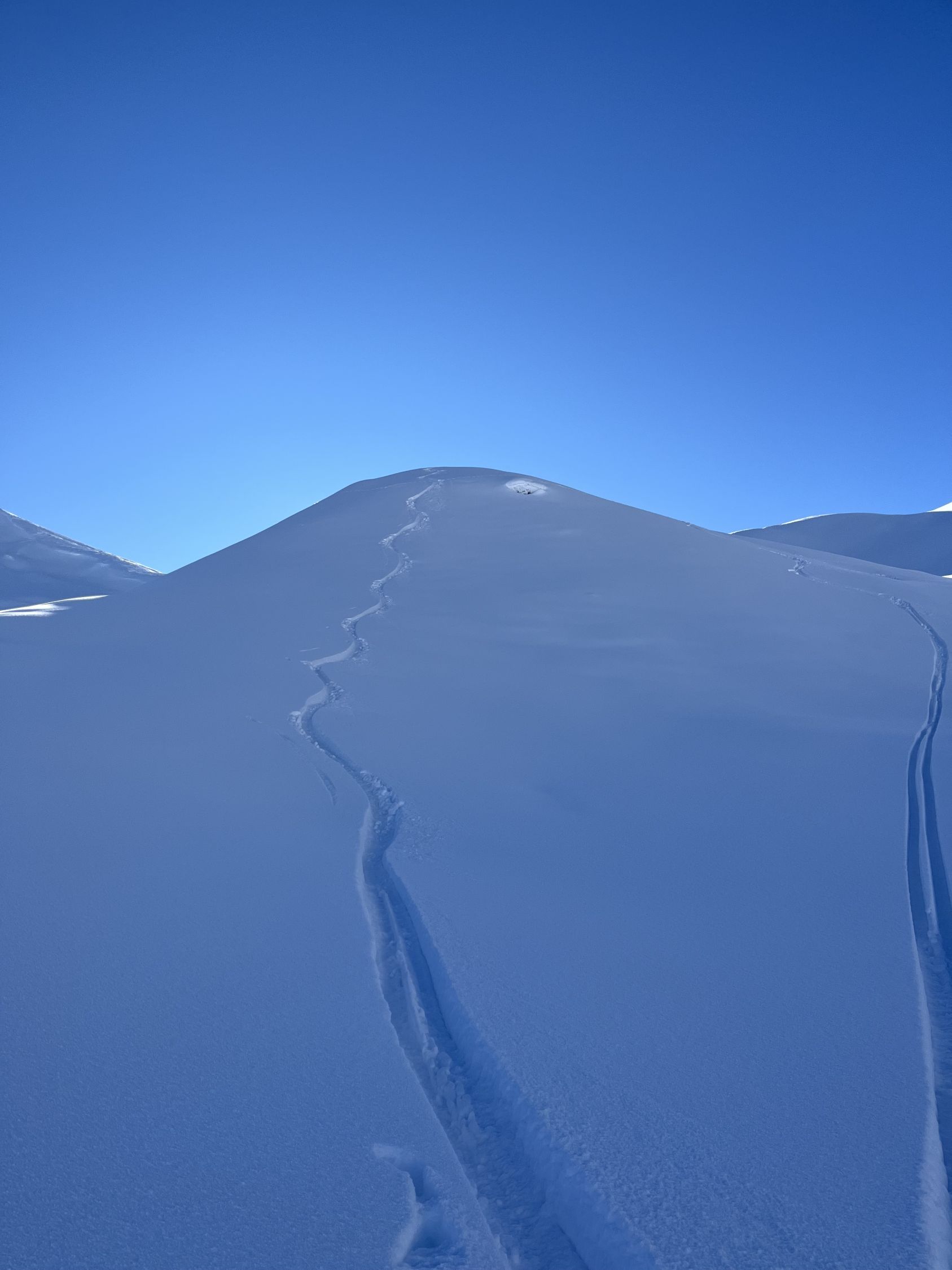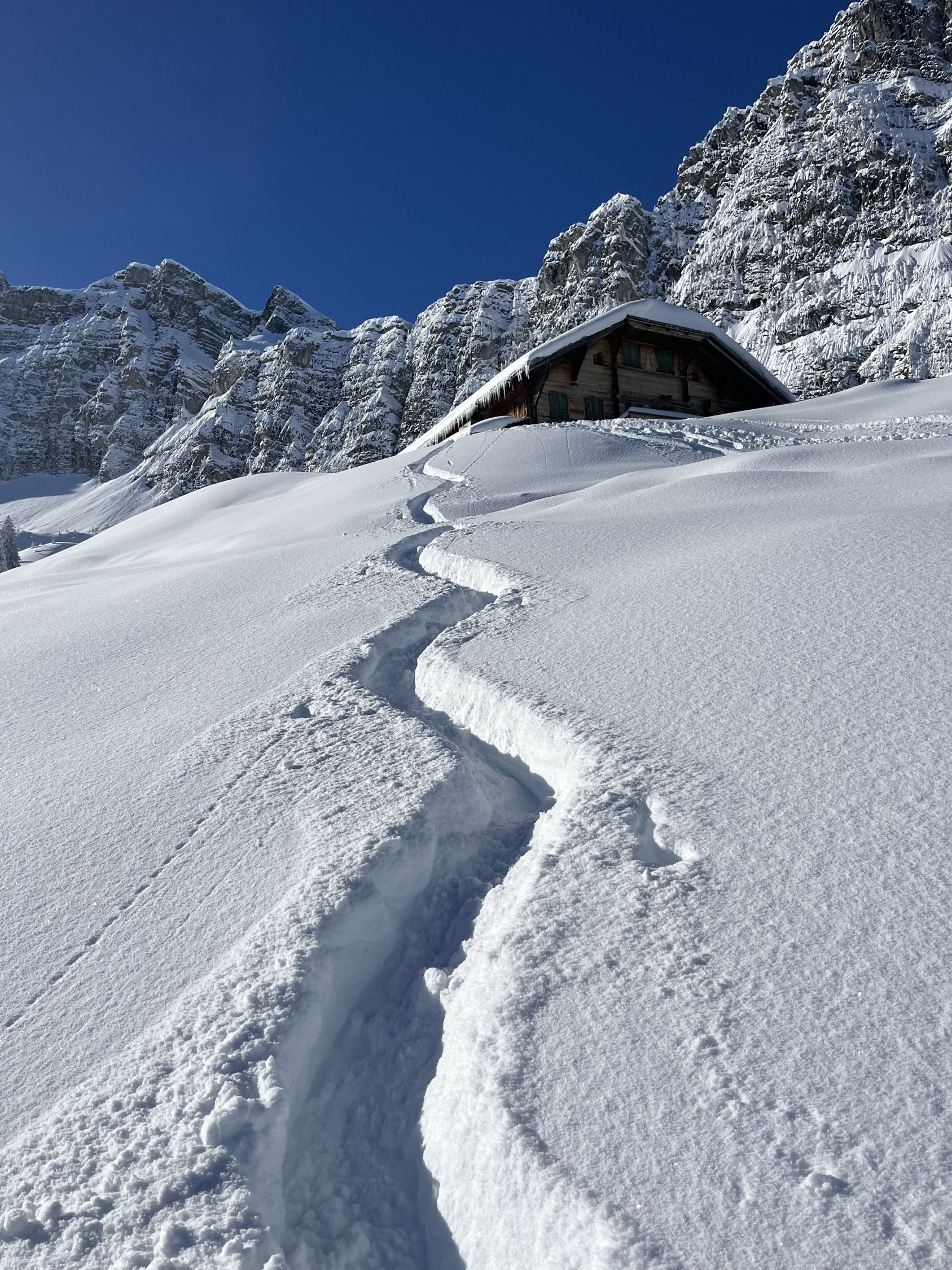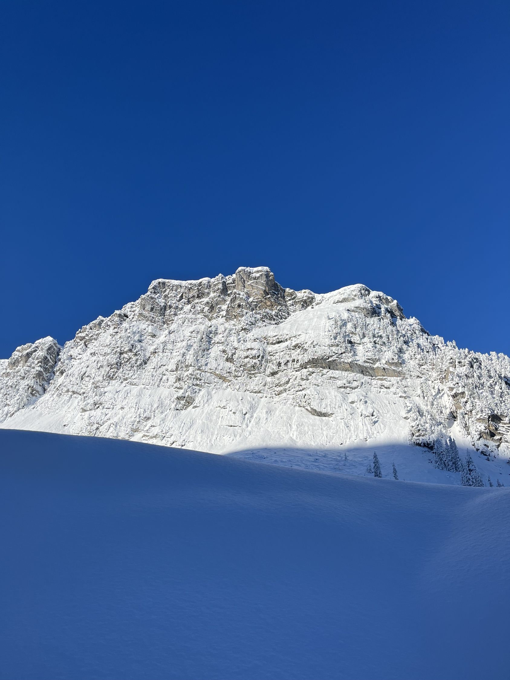 Um 9.00 Uhr bei Minus 3,5 Grad auf dem Parkplatz Grimmialp gestartet. Schon auf dem Talboden hat es über 30 cm Neuschnee auf einer Unterlage. Der Schnee von letzter Woche hat bereits eine gute Grundlage gegeben. Wir hatten keinen Steinkontakt. Ab Grimmi (1840m) hat es über 50 cm Neuschnee. Der Gipfelhang ist gut eingeschneit. Erstaunlicherweise nicht abgeblasen. Traumhaft schöner Pulverschnee zum abfahren. Kaum Wind auf dem Gipfel und dank der Sonne angenehm warm. Eine sehr lohnende Tour bei „Erheblich“. Galmscheibe wurde auch gemacht.
