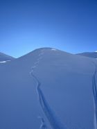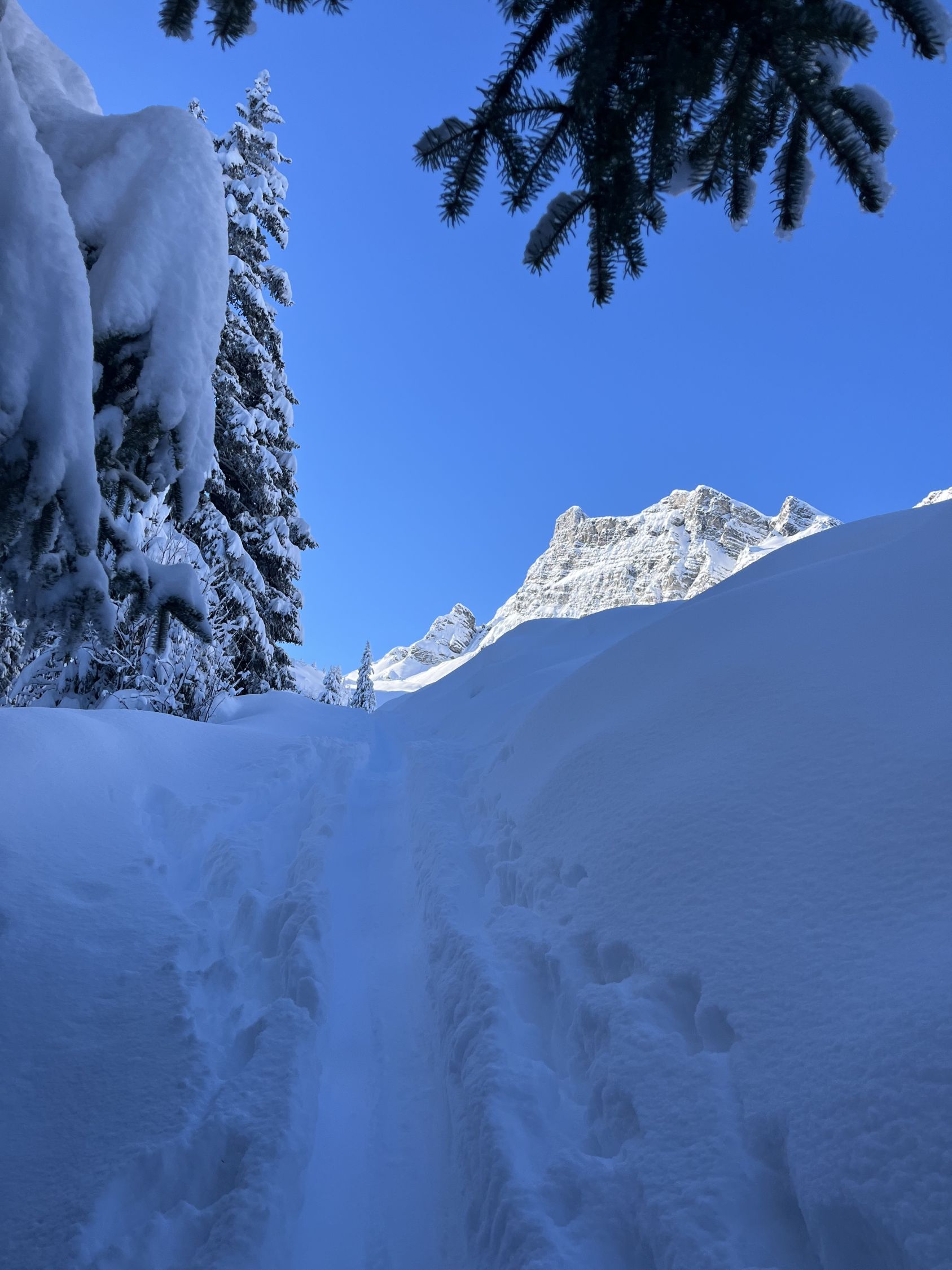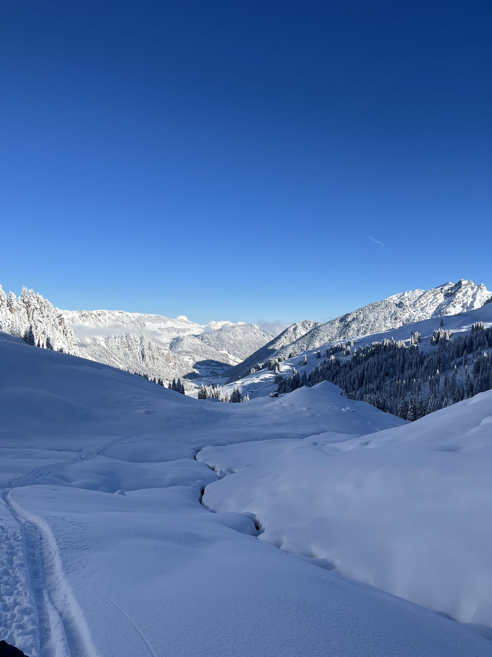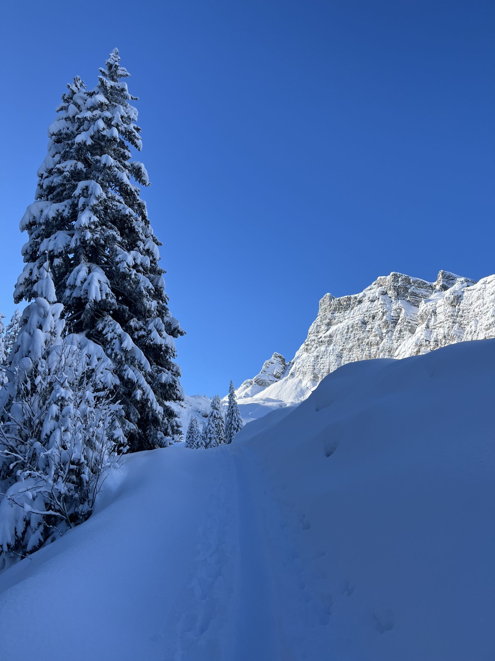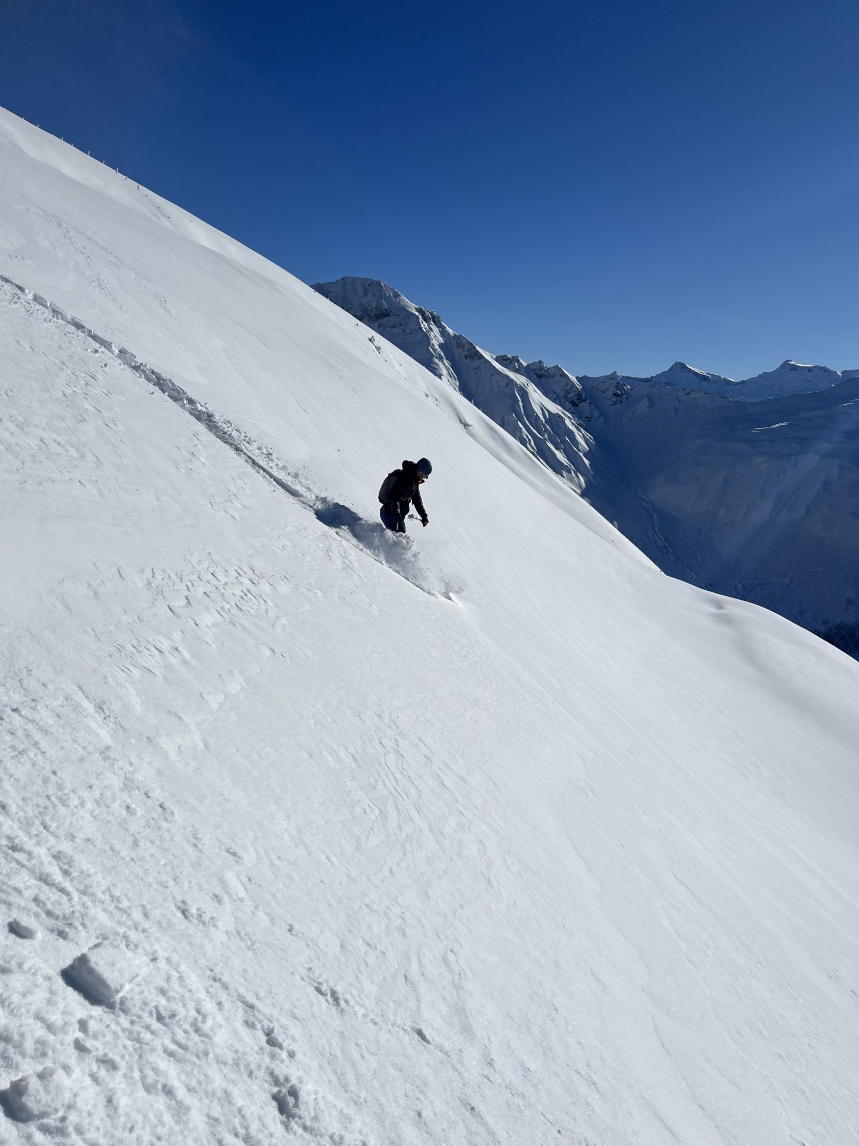 Um 9.00 Uhr bei Minus 3,5 Grad auf dem Parkplatz Grimmialp gestartet. Schon auf dem Talboden hat es über 30 cm Neuschnee auf einer Unterlage. Der Schnee von letzter Woche hat bereits eine gute Grundlage gegeben. Wir hatten keinen Steinkontakt. Ab Grimmi (1840m) hat es über 50 cm Neuschnee. Der Gipfelhang ist gut eingeschneit. Erstaunlicherweise nicht abgeblasen. Traumhaft schöner Pulverschnee zum abfahren. Kaum Wind auf dem Gipfel und dank der Sonne angenehm warm. Eine sehr lohnende Tour bei „Erheblich“. Galmscheibe wurde auch gemacht.