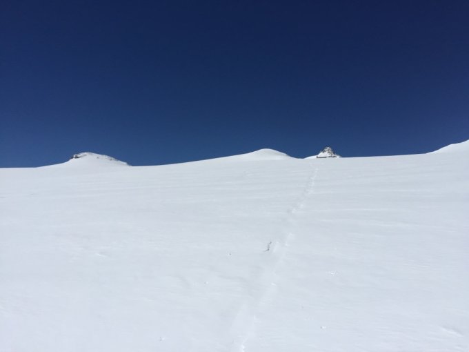 Viel Schnee auf der ganzen Route. Keine Spalten sichtbar.