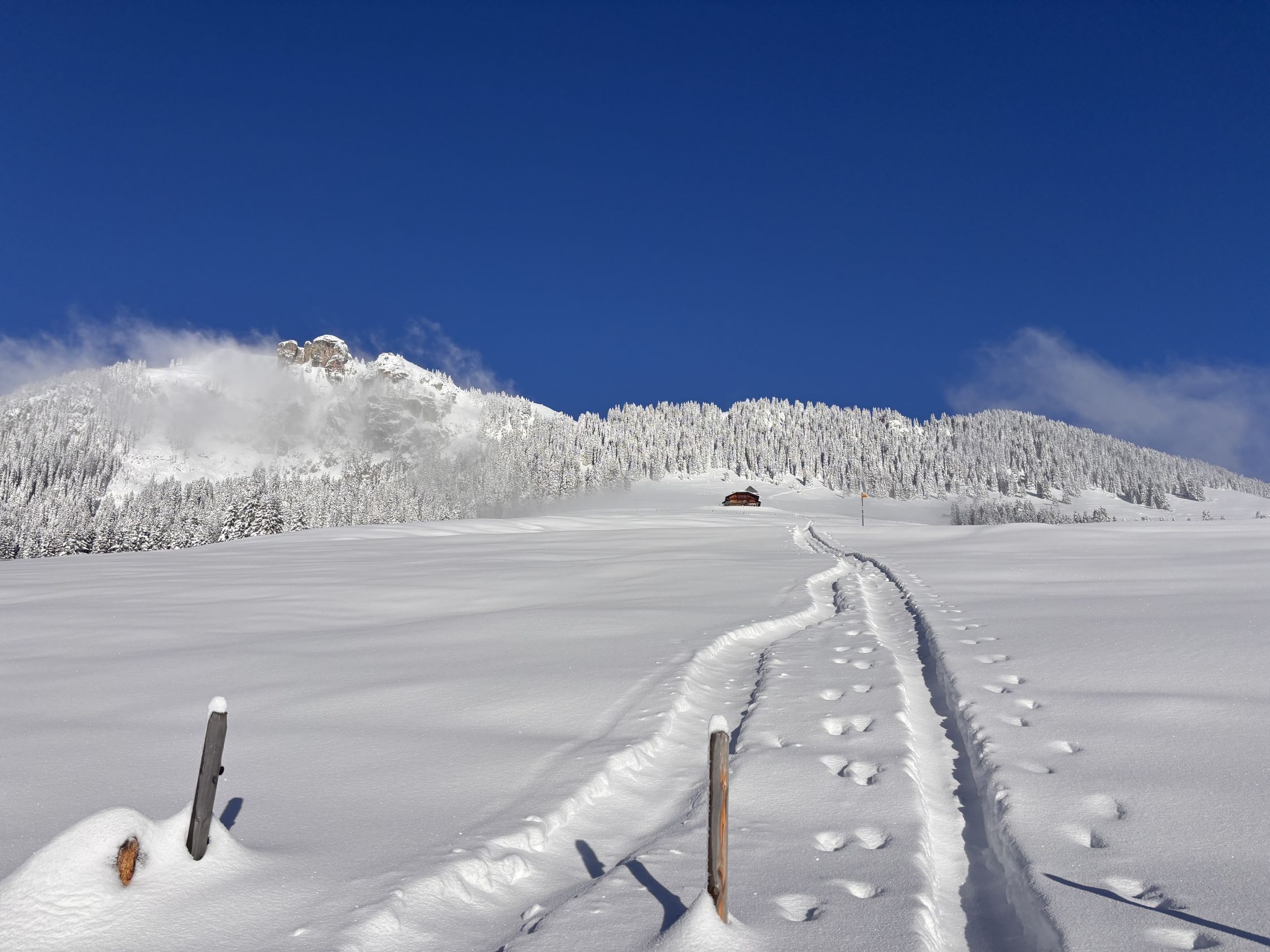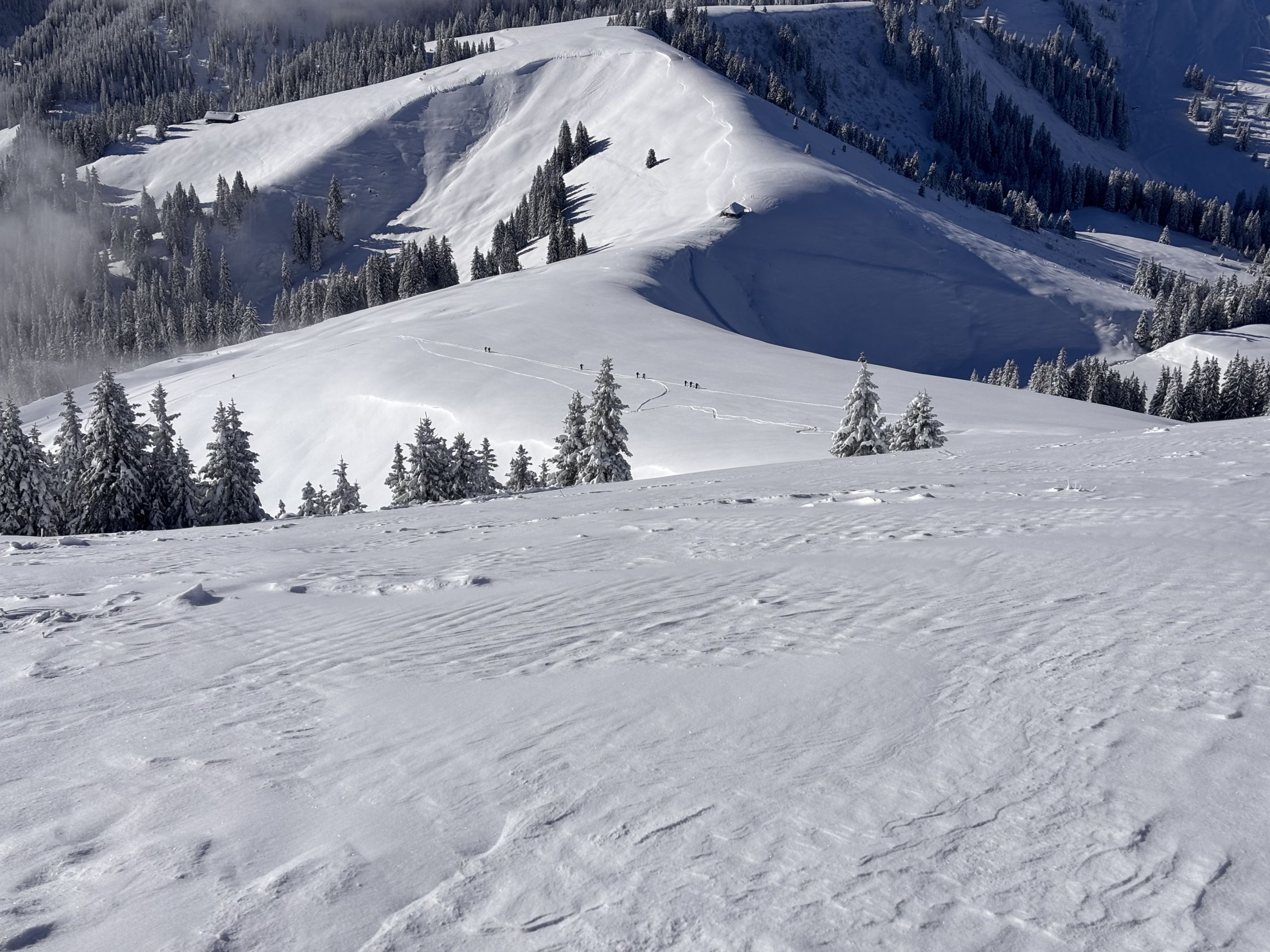 Genug Schnee ab Zwischenflüh Parkplatz bei ÖV Seebergstrasse, wir sind heute dort kurz vor 9 Uhr gestartet, um 11:30 h auf dem Gipfel.