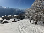 Top-Bedingungen! Abfahrt bis Vorsass perfekt. Auch darunter toll, der Schnee an den Sonnenhängen über dem Dorf wurde aber in der Wärme angefeuchtet, liegt ganz unten teilweise ohne Unterlage.
