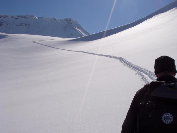 Nach den ergiebigen Schneefällen der letzten Tage erwischten wir ideale Verhältnisse bei recht geringer Lawinengefahr (Stufe mässig). Trotzdem ist, vor allem in den Schattenhängen des Osthanges unterhalb des Passes, vorsicht geboten.