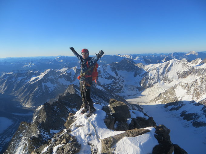 Anmarsch und Rückweg sind wirklich seeeeehr lange, v.a. die Abschnitte auf den Moränen... ;-) Gipfelbesteigung wohl in fast idealen Verhältnissen und nur zu zweit am grossen Berg! Grosser Dank an meinen Seilpartner Daniel für die tolle Tour und die gemeinsame Leistung!