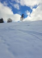 Überall genügend Schnee vorhanden. Ab 1000 müm ca 30 cm mit Unterlage. Am Gipfel ca 40 cm, davon 10-20 cm Pulver. Bis Mittag sonnig, dann aufsteigende Nebelschwaden und wolkig.