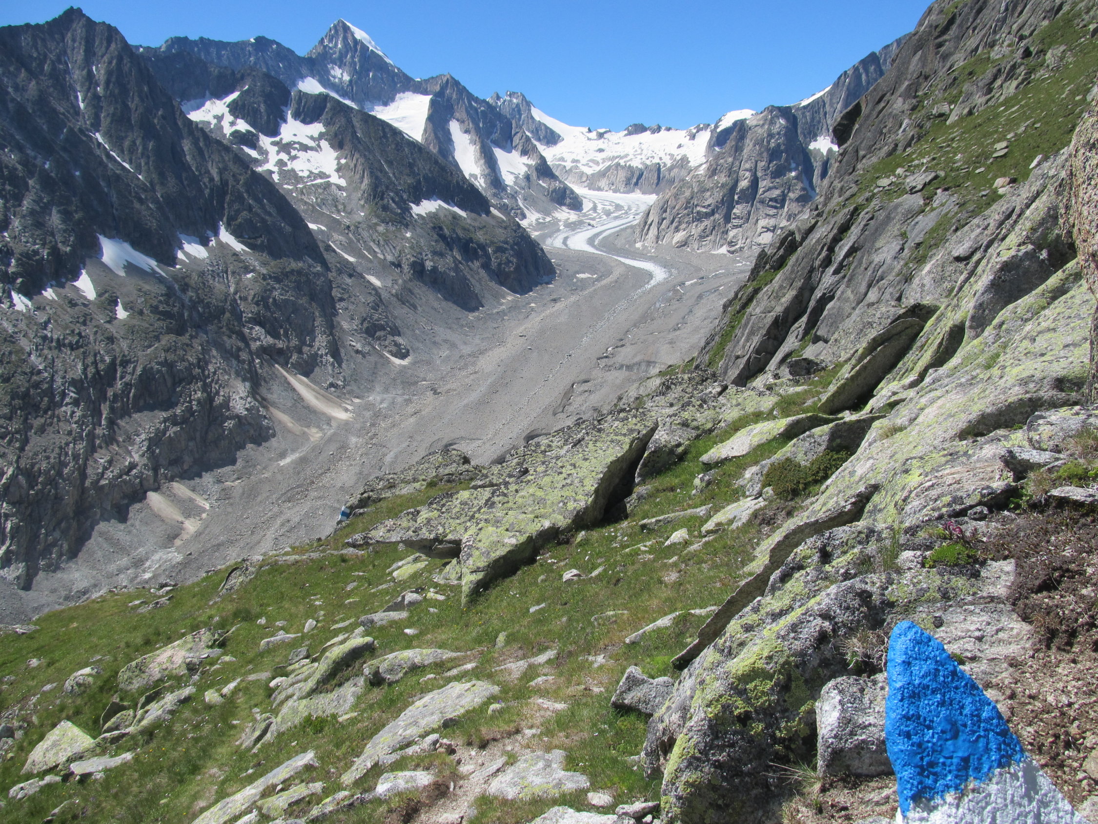 Auf dem landschaftlich schönen Hüttenweg sind total 250 m Gegensteigung zu bewältigen. Totalabstieg vom Geisshorn nach Belalp 1900 m.