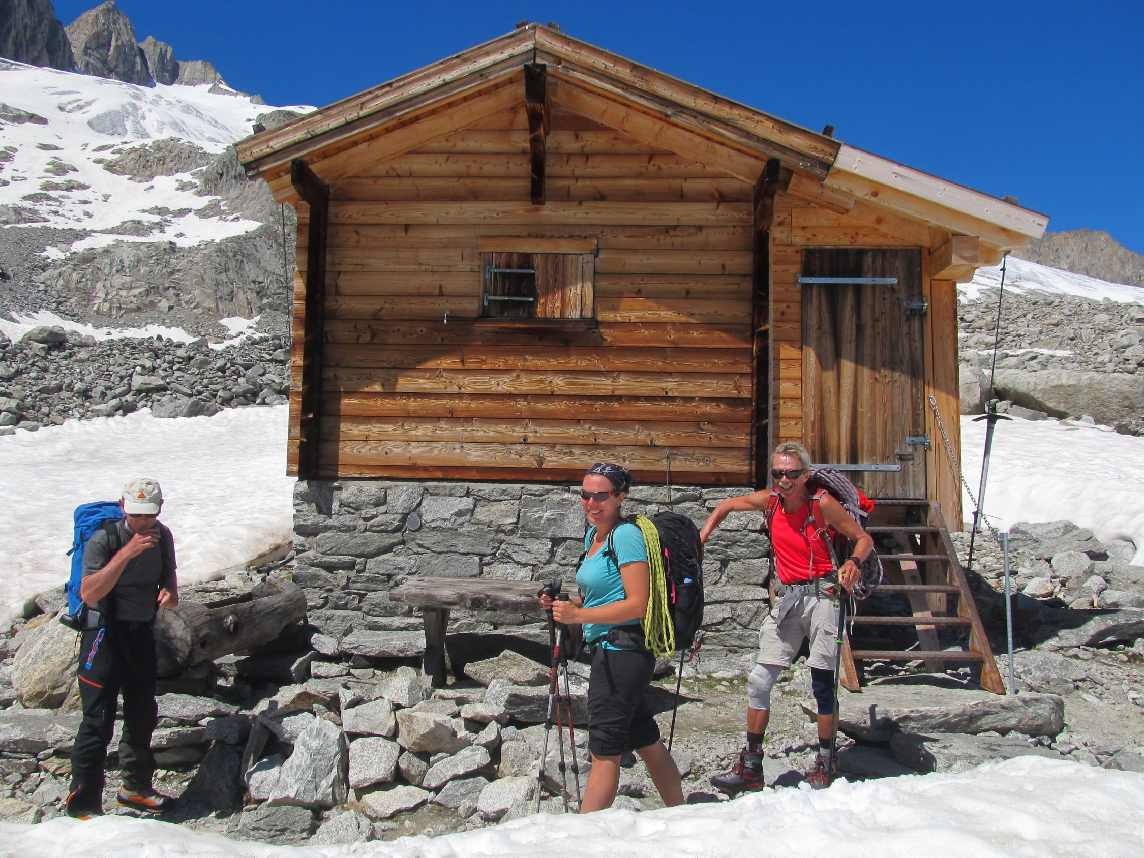 Bei den warmen Temperaturen schmilzt logisch Schnee. Steigeisen werden bald nicht mehr vor der Hütte angezogen. Jetzt wars noch ganz praktisch.