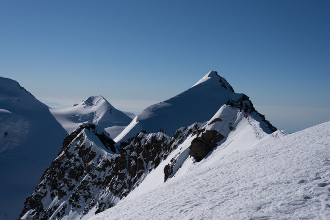 - Felsen vom Ostgipfel zum Punkt 4417 fast komplett eingeschneit. Luftige Grattour!