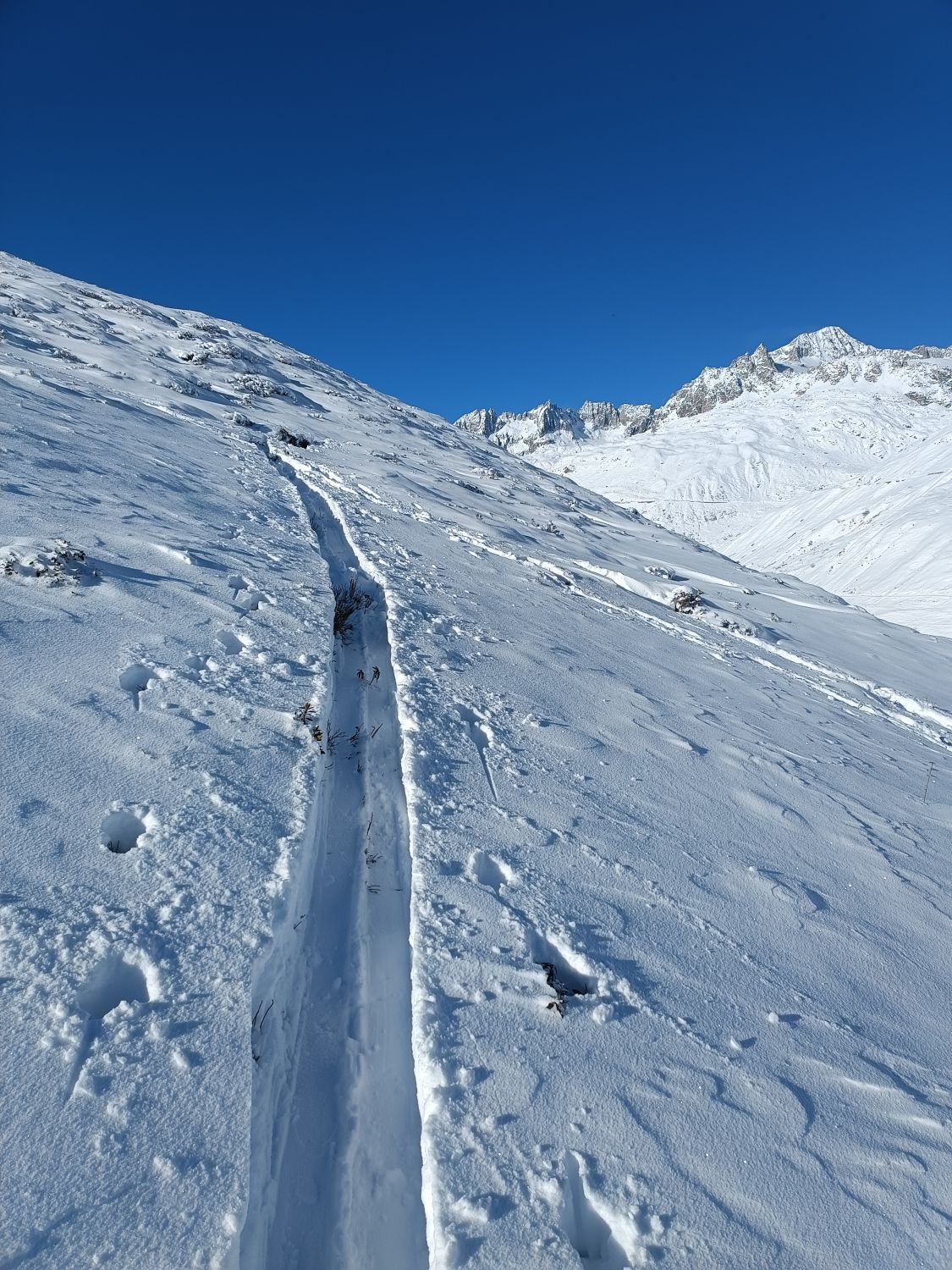 Von Realp bis ca.2000 m.ü.M. knapp mit Schnee.Nachher gut aber ohne Unterlage.Steinkontakt überall möglich.Trotzdem schöner Aufstieg mit einigen schönen Schwüngen auf der Abfahrt.Angereist von Göschenen mit dem E-Bike; gut fahrbar ins Tal bis Abzw.Kraftwerk.