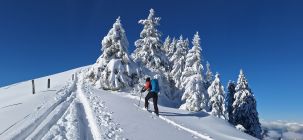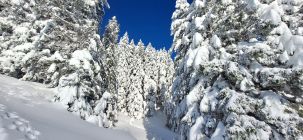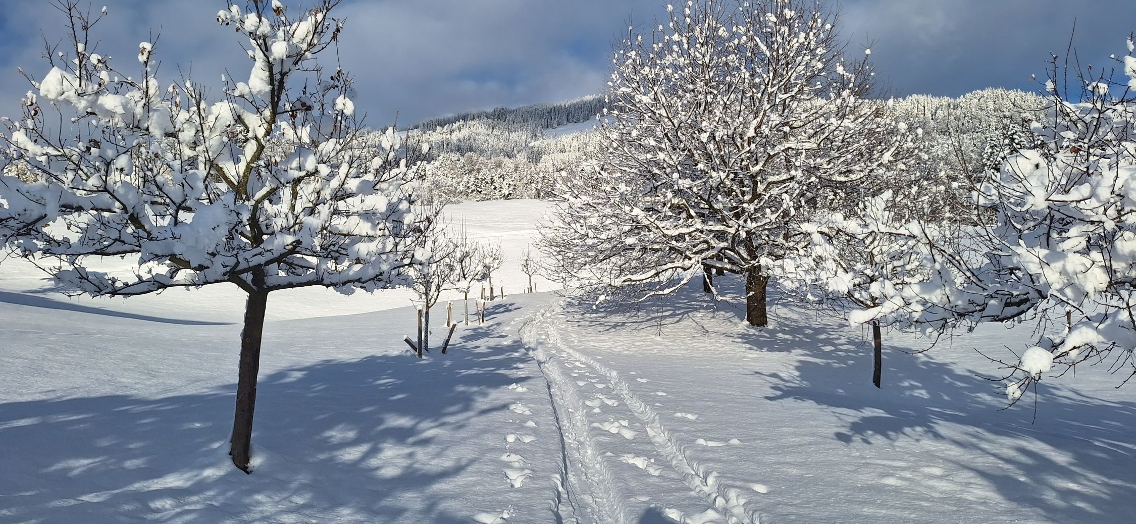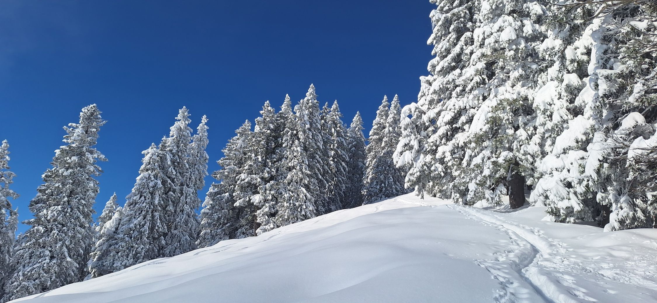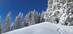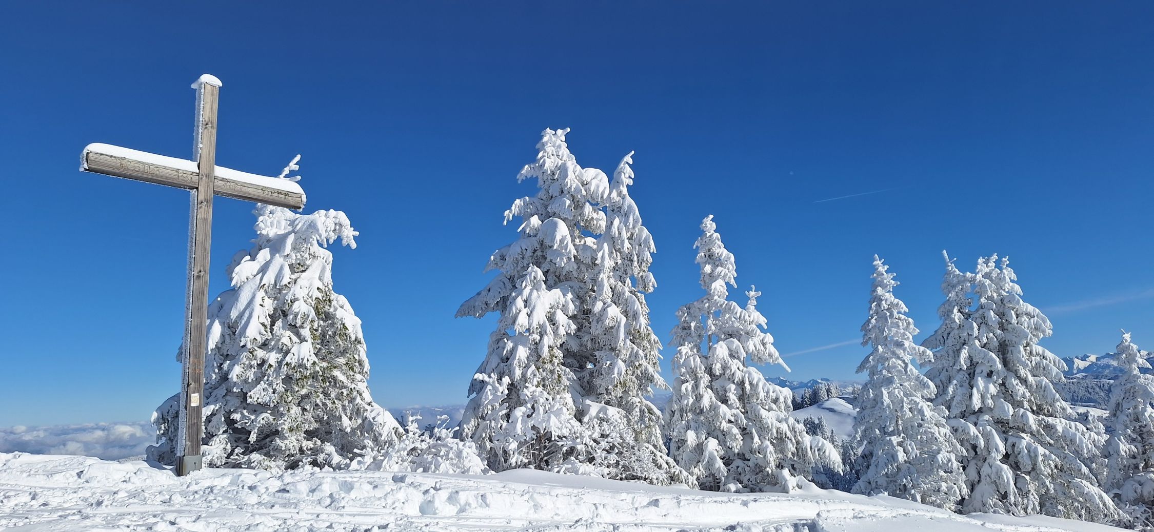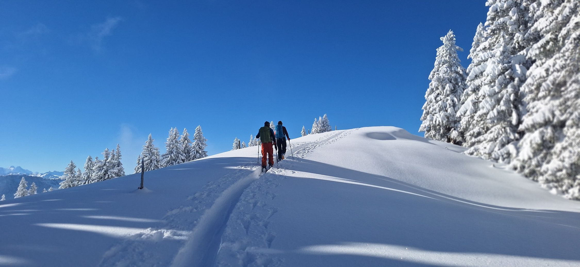 Bereits beim Start genügend Schnee. Heute war der richtige Tag für eine Tour auf den Wildspitz. Schönes Wetter und genügend Schnee.