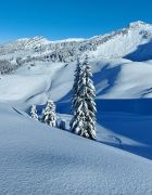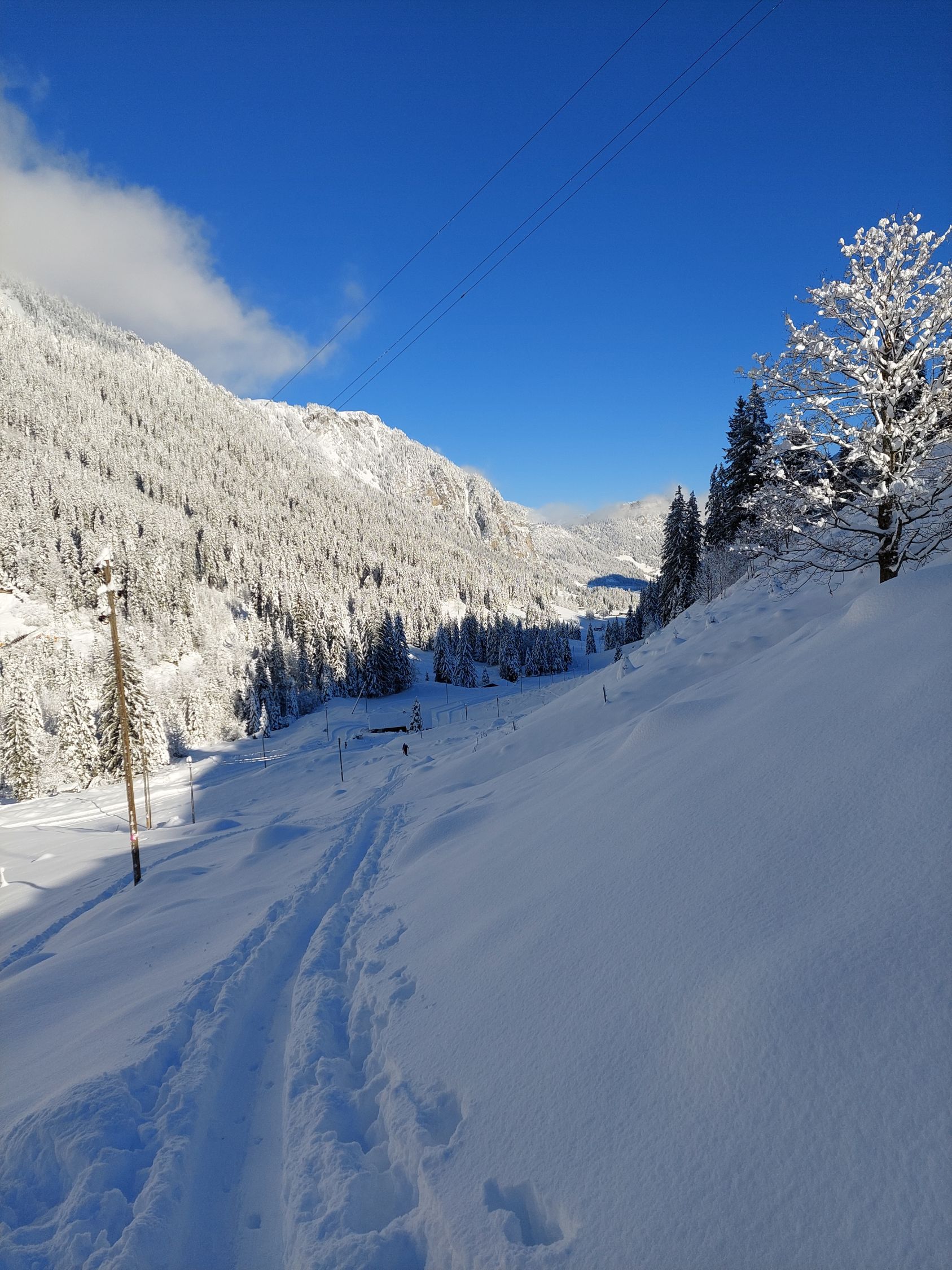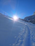 Aufstieg: Der Aufstieg Richtung Alp Grimmi, Grimmifurggi und weiter zum Gipfel ist problemlos und alles mit sehr viel Pulver eingeschneit. Beim Parkplatz ca. 40cm Pulver.