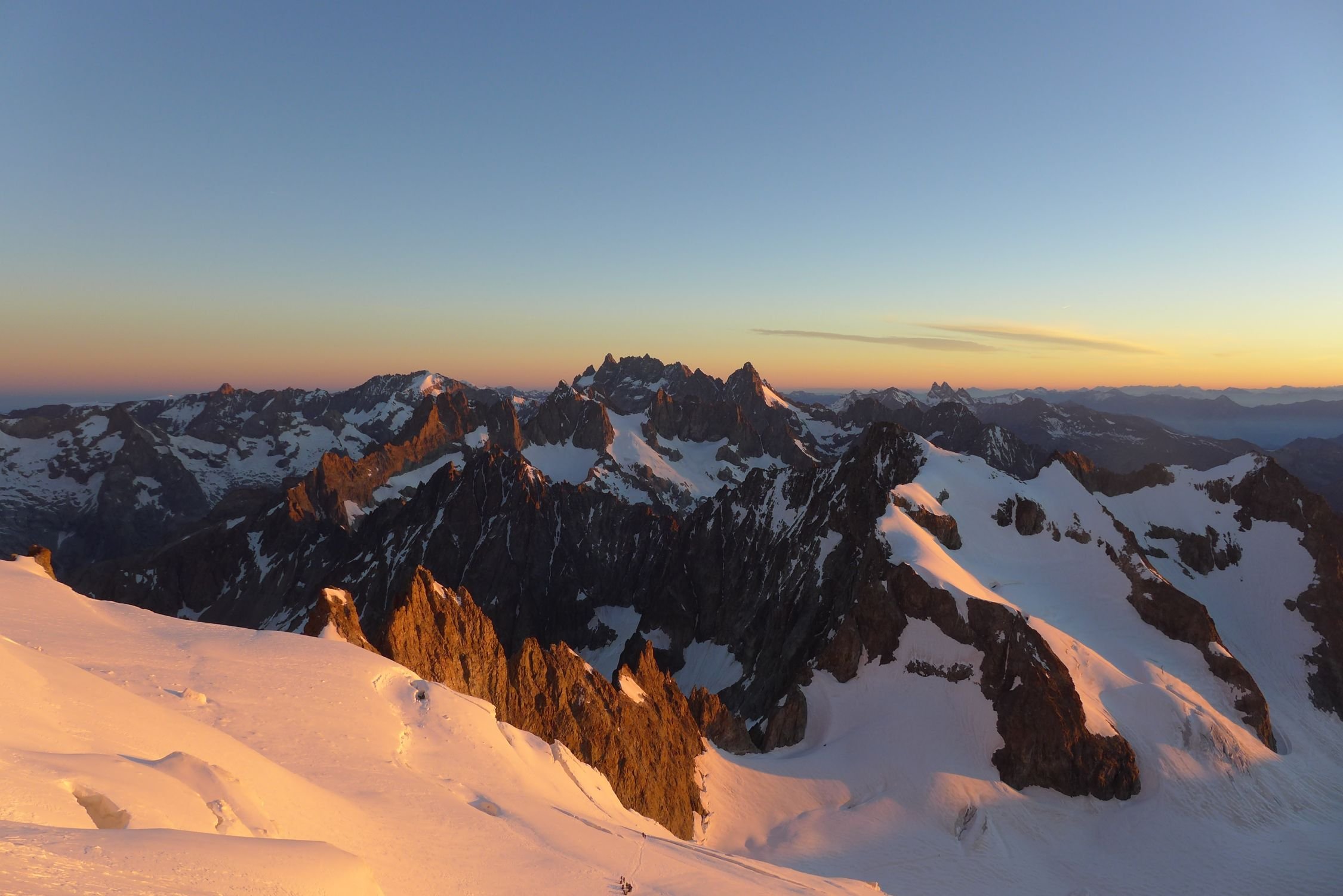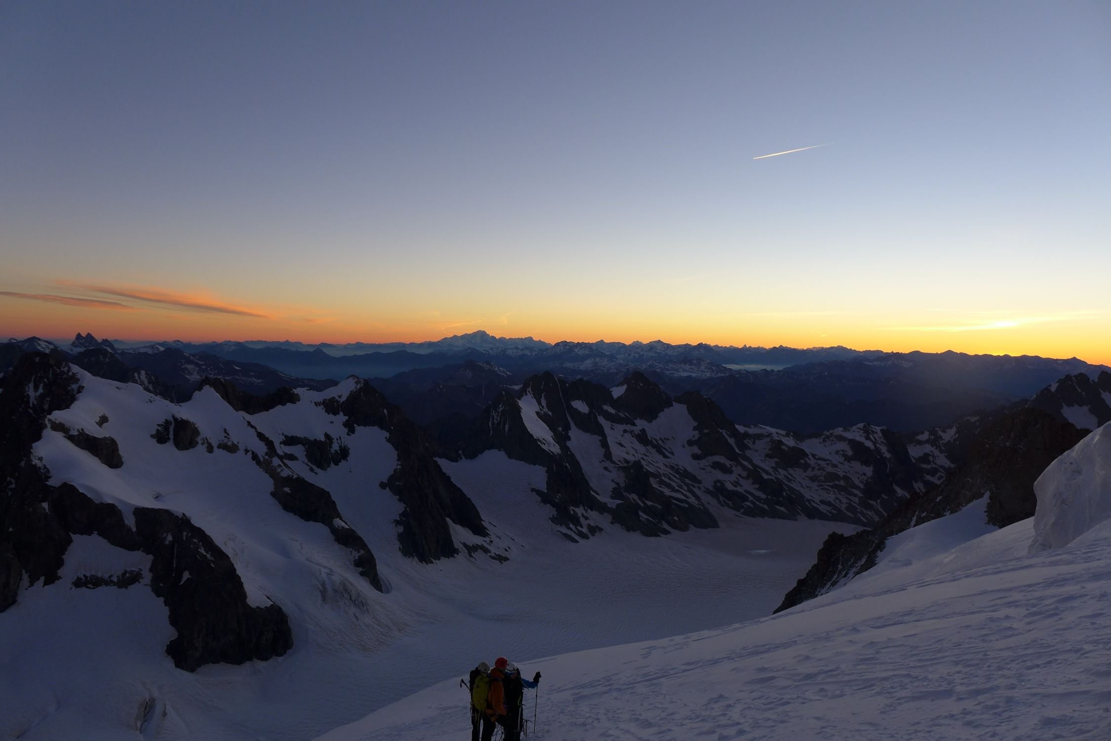 Start ca. 3:45, Gipfel um 6:50 erreicht (30 min für's Couloir) weiter zum Dome de Neige traversiert, diesen um 8:00 erreicht.