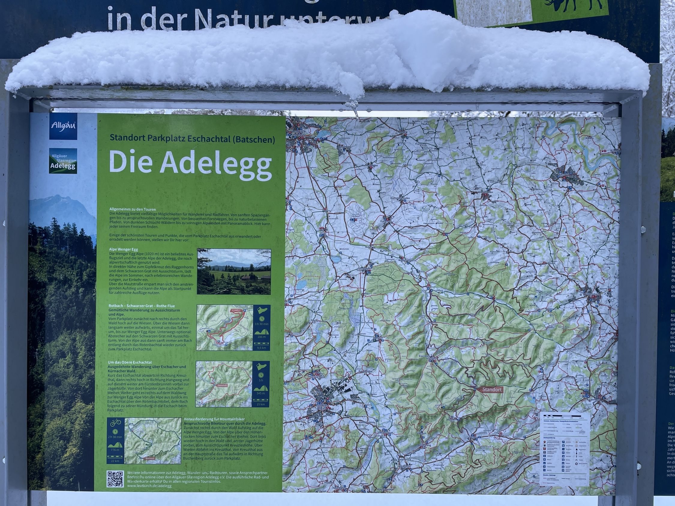 Ideale Tour für diejenigen, die sich körperlich zur Zeit im Reha-Stadium befinden. Ansonsten eine kleine, familiengeeignete Tour, die auf die Grenze zwischen dem bayerischen und dem württemberischen Allgäu führt. Die Adelegg, ein Höhenzug vor den Allgäuer Alpen, ist wenig besiedelt aber landschaftlich reizvoll mit freien Blicken zu den Voralpen vom Raggenhorn und Aussichtsturm auf dem Schwarzen Grat. All zu viele markierte Wanderwege gibt es im Höhenzug der Adelegg nicht. Allerdings etliche unmarkierte Forstwege, welche laut Schilder zum Teil als „geschützter Lebensraum“ gelten. In diesem Lebensraum gibt es einige Hochstände der Jäger. …