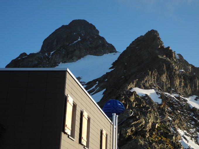 Nach dem Gipfel über Südgrat ins Ränfenjoch und Abstieg zur Gaulihütte. Dank des durchgehenden Schneefeldes kann in einer geraden Linie auf den Gauligletscher abgestiegen werden. Vom Gletscher auf ca. 2550m unbedingt auf dem Fels wieder auf 2600m ansteigen um so auf den Weg zu gelanden. Dakota Memorial nicht verpassen.
