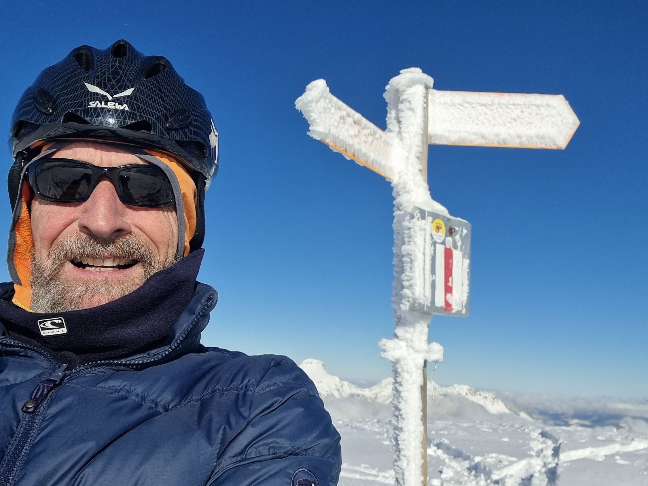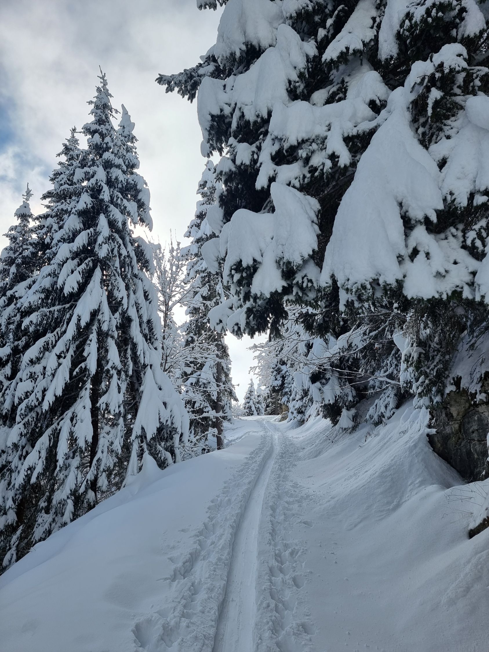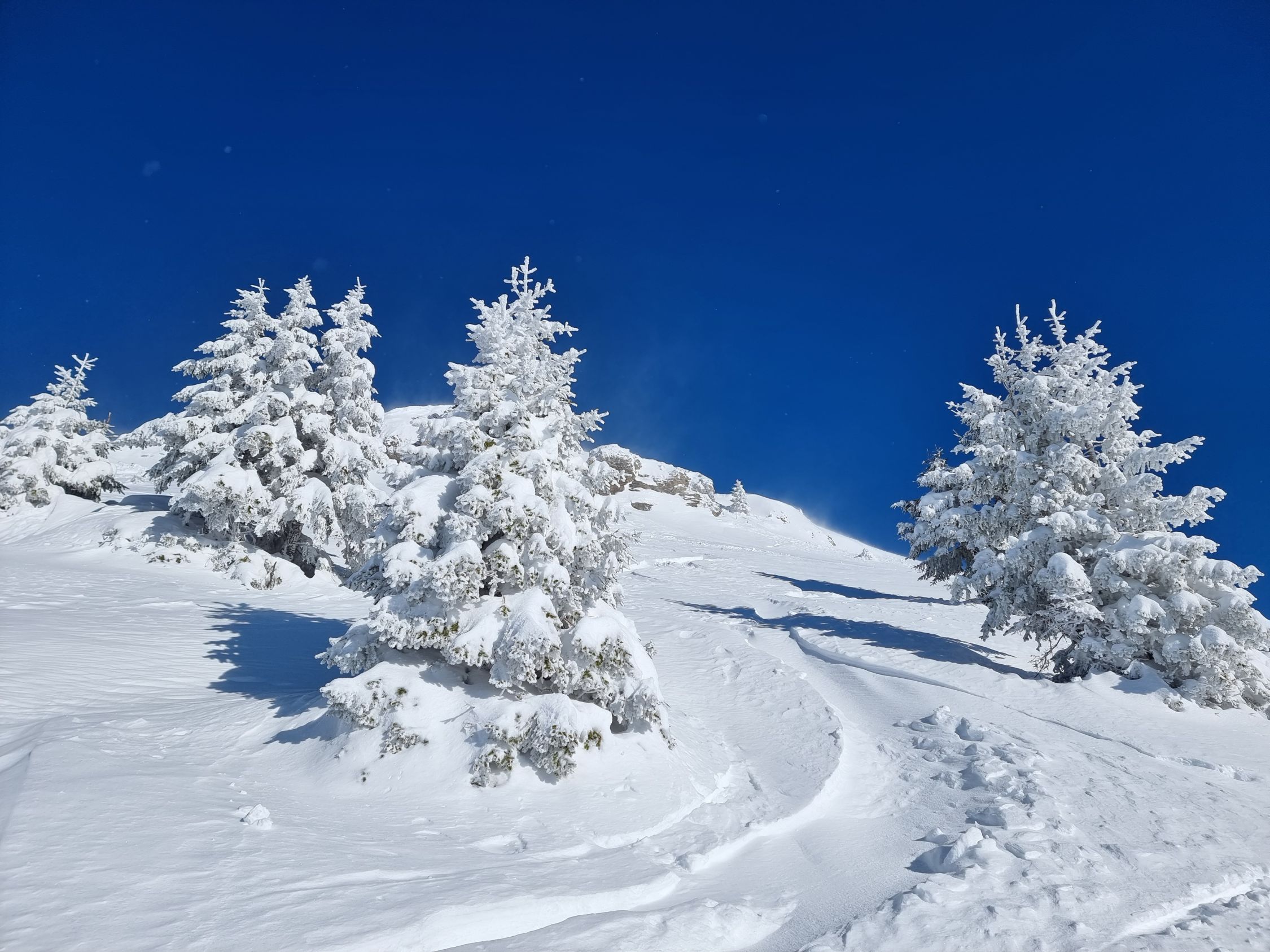 Nicht ab/bis Zwischenflüeh, sondern: Bei Zwischenflüeh hochfahren (Zahlstation, CHF 7.-) bis zum Parkplatz (links der Hauptstrasse, kurz vor dem Hüttli, vgl. Bild 1), ca. 1220 m. Los um 10.15 Uhr auf guter Spur durch die wunderbar verschneite Landschaft. Auf der weiten Gipfelfläche bis zum Wegweiser mit giftigem Wind. Knapp drei Std. inkl. Pausen. Abfahrt oben in Zauberpulver, 50 cm oder mehr. Gegen unten hin feucht werdend und schon mit kleinem Deckel. Immer wieder eine lohnende Tour ohne Lawinengefahr.