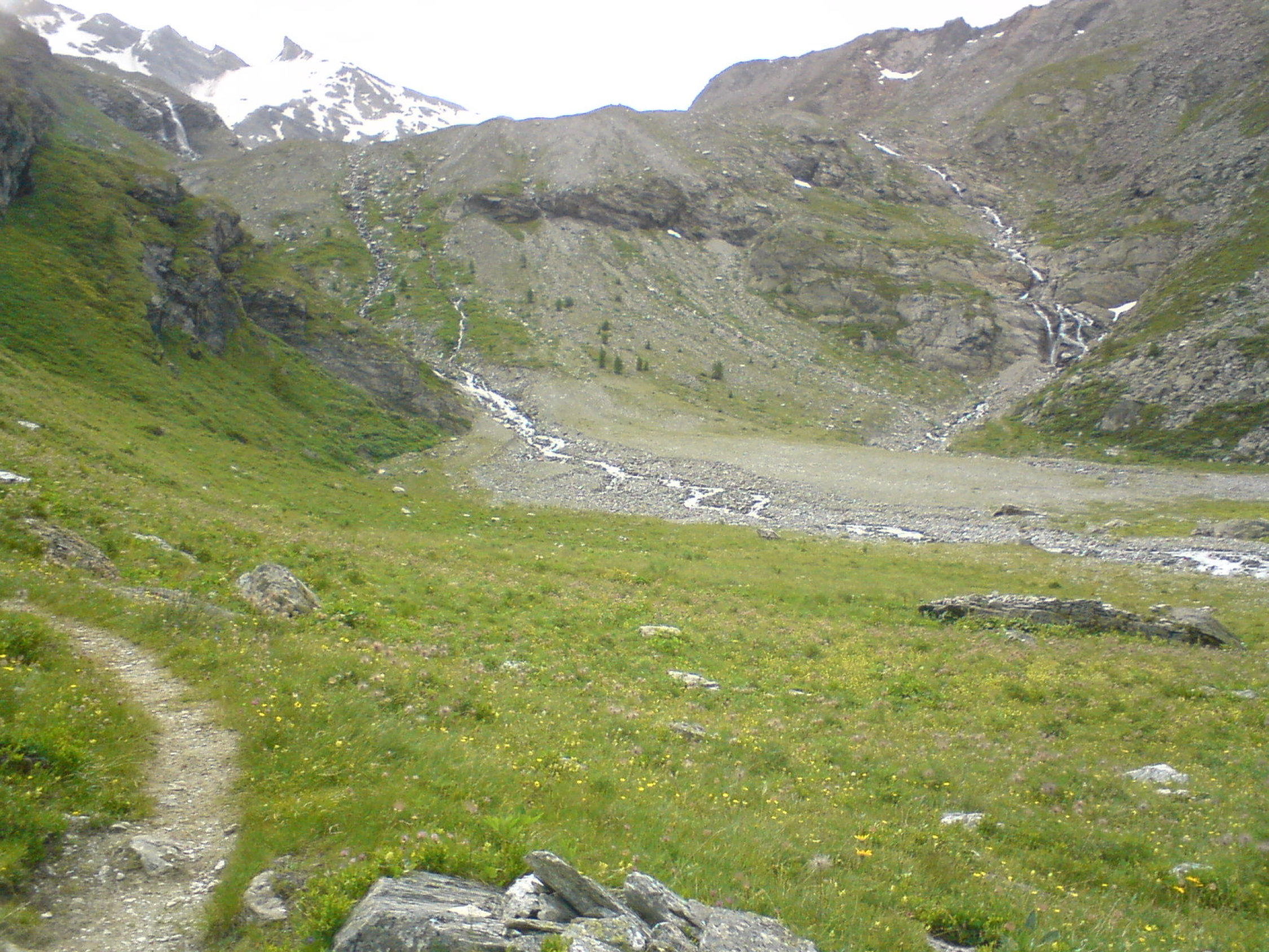 Lac de Saint-Martin von Surrier aus Von Surrier aus über den Alpweiler Mont Forchat den Höhenweg Nr. 11 nehmen, dann beim Punkt 2663 auf dem Geländerücken Richtung Osten bos man wieder auf den Weg trifft, der von unten rechts auf den Rücken führt.