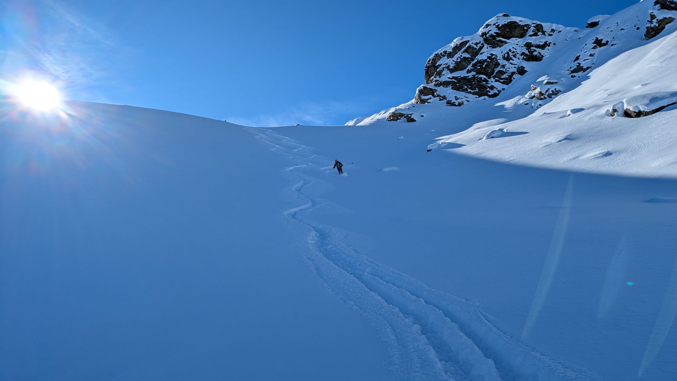 Streckenweise kalter Wind. Pulver von unten nach oben und umgekehrt.