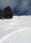 Schön und warm, ca. 10 cm Neuschnee. Unterlage unten an wenigen Stellen knapp (Wiese), sonst meist gut tragend. Tolle Abfahrt. Neuschnee um 10 Uhr schon recht feucht.