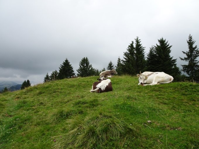 Wege teils feucht, matschig aber auch trockene Abschnitte. Leider waren die Gipfel oberhalb ca. 1‘500 Meter in dicke Wolken gehüllt…