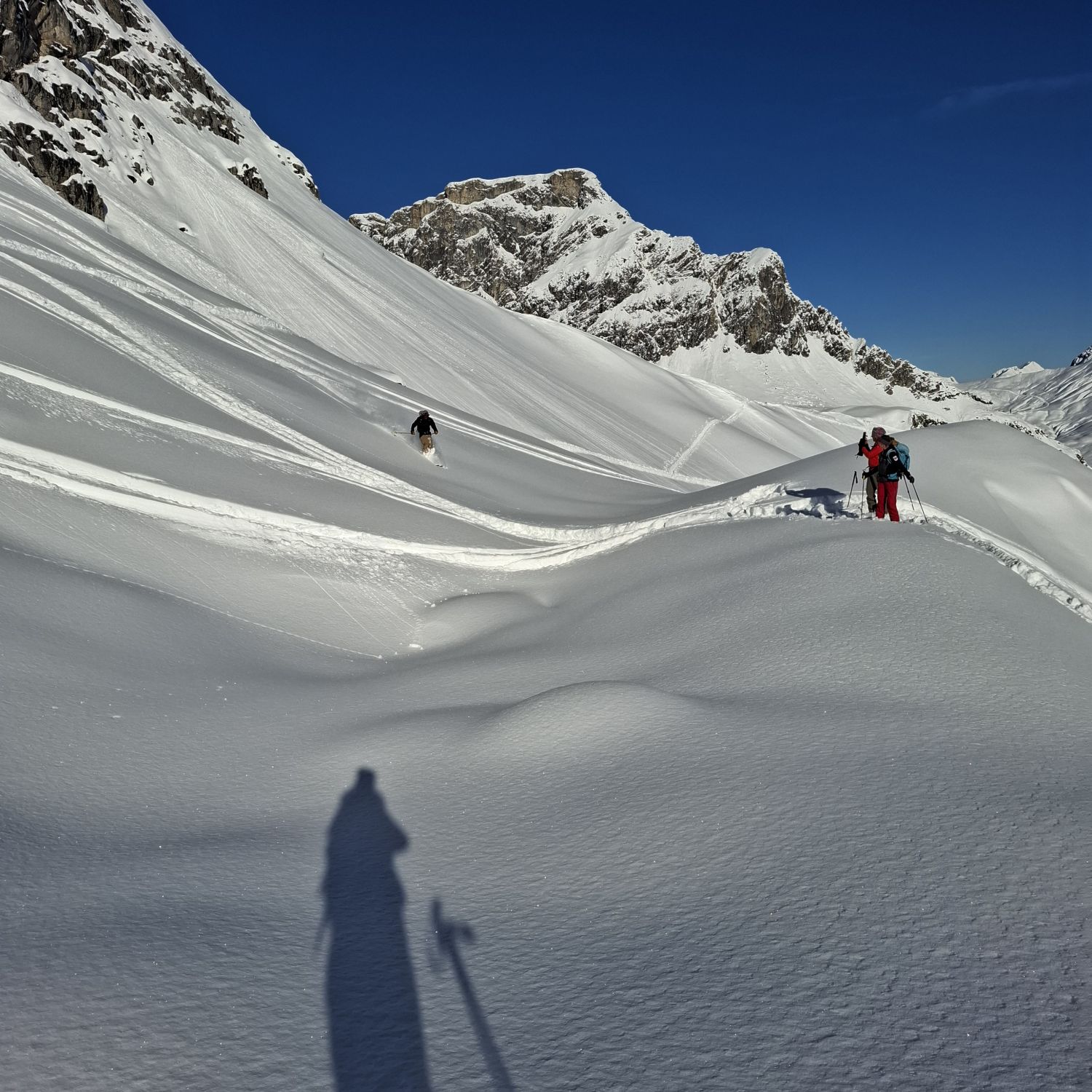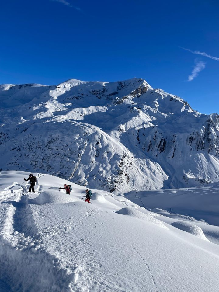 Bei windstille und schönstem Wetter mit schönem Pulver zum Gipfel. Kein steinkontakt, keine windprobleme.