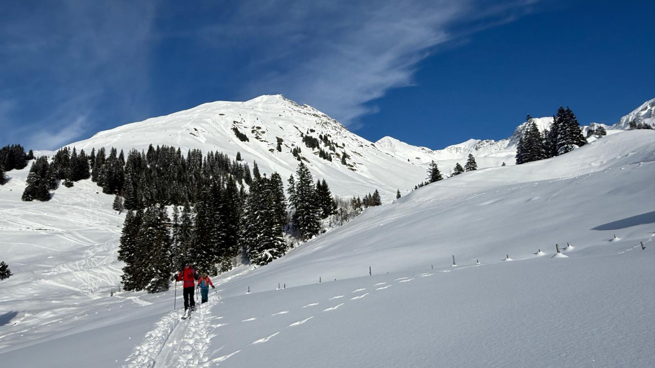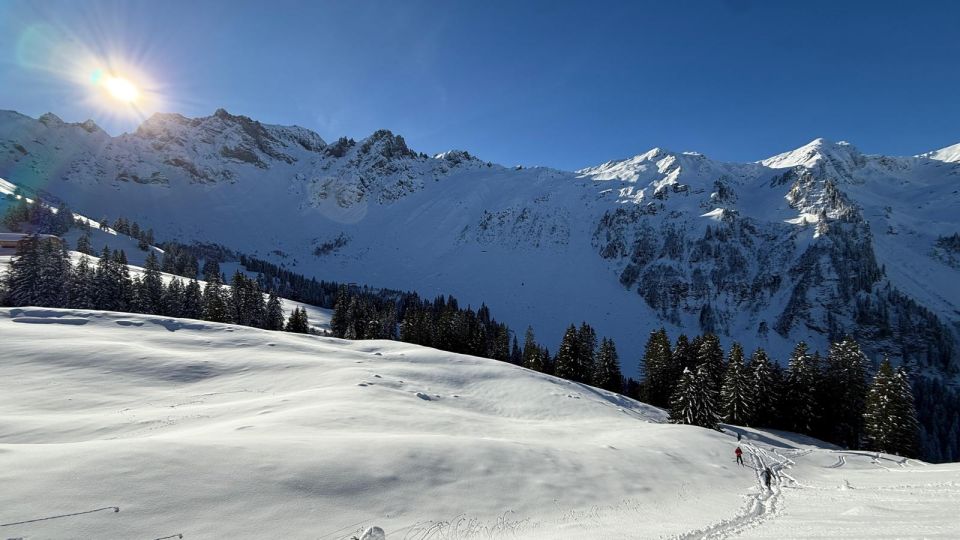 Viel Schnee in der Region und wenn man in den Hauptabfahrtsrinnen bleibt auch keine Steinkontakte. Aber der Schnee leider lange nicht so gut wie wir erwartet hatten. Die sonnige südexponierte Lage und die warmen Temperaturen haben aus dem Pulver leider viel zu schnell eine ziemlich zähe Masse gemacht.