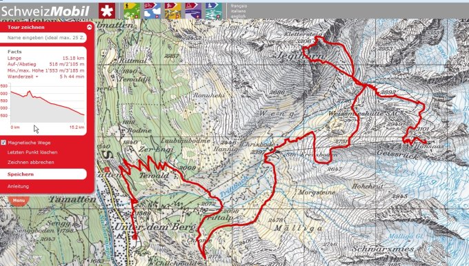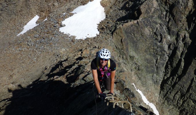 Wir sind mit dem Bike vom Hohsaas auf Hüttenhöhe runtergefahren und nach dem Klettersteig zurück nach Saas Grund.