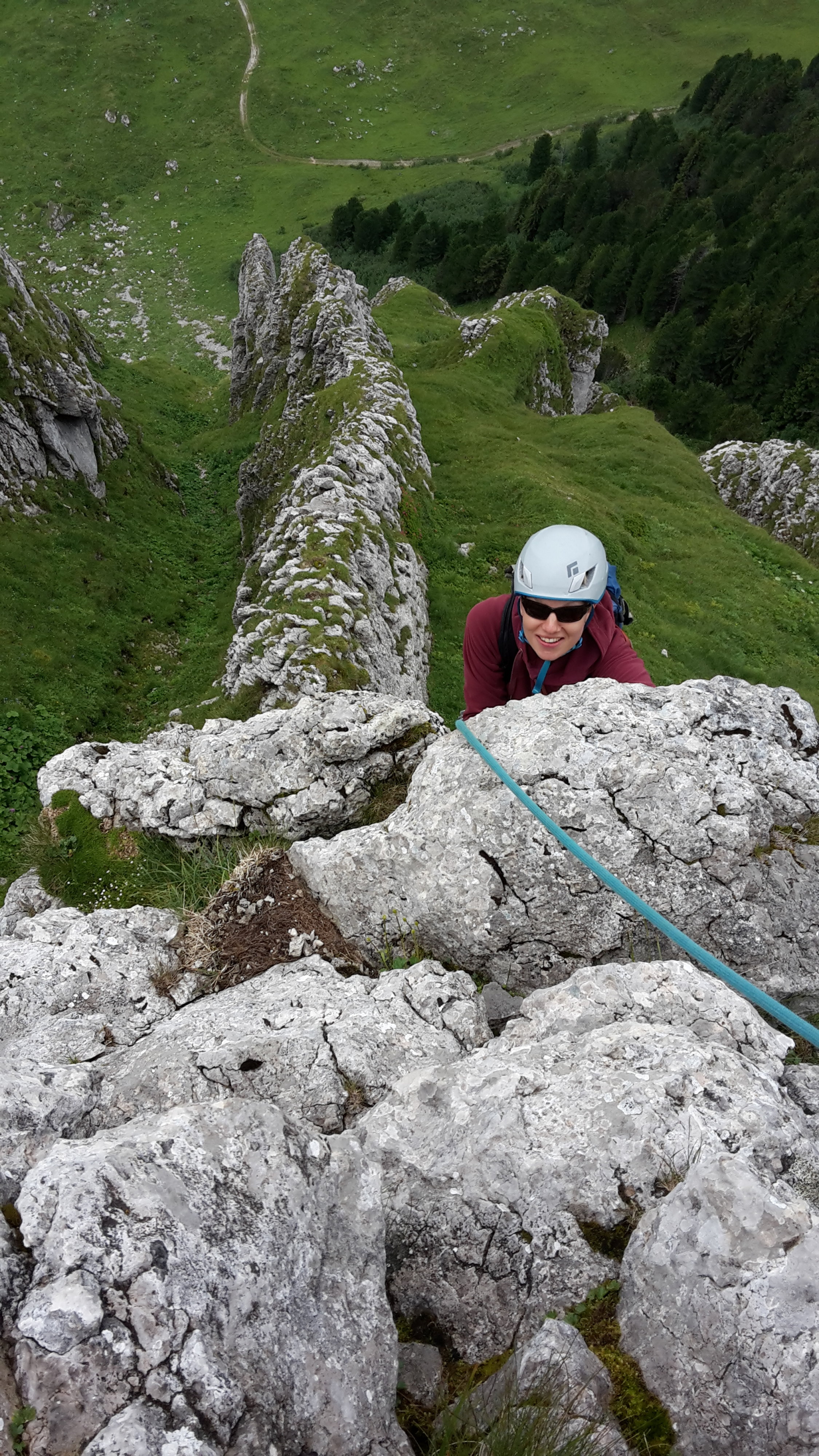 Zustieg rel. mühsam, man muss sich morgens durch rel. hohe, feuchte Vegetation schlagen. Das in der Routenbeschreibung erwähne "breite Grasscouloir" ist momentan leider durch einen Murgang teilweise zerstört und zusätzlich schmierig. Achtung, beim Zustieg kommt mal ein Bohrhaken bei einem kleinen Baum, der Einstieg der Routen ist aber noch ca 20-30m weiter rechts.