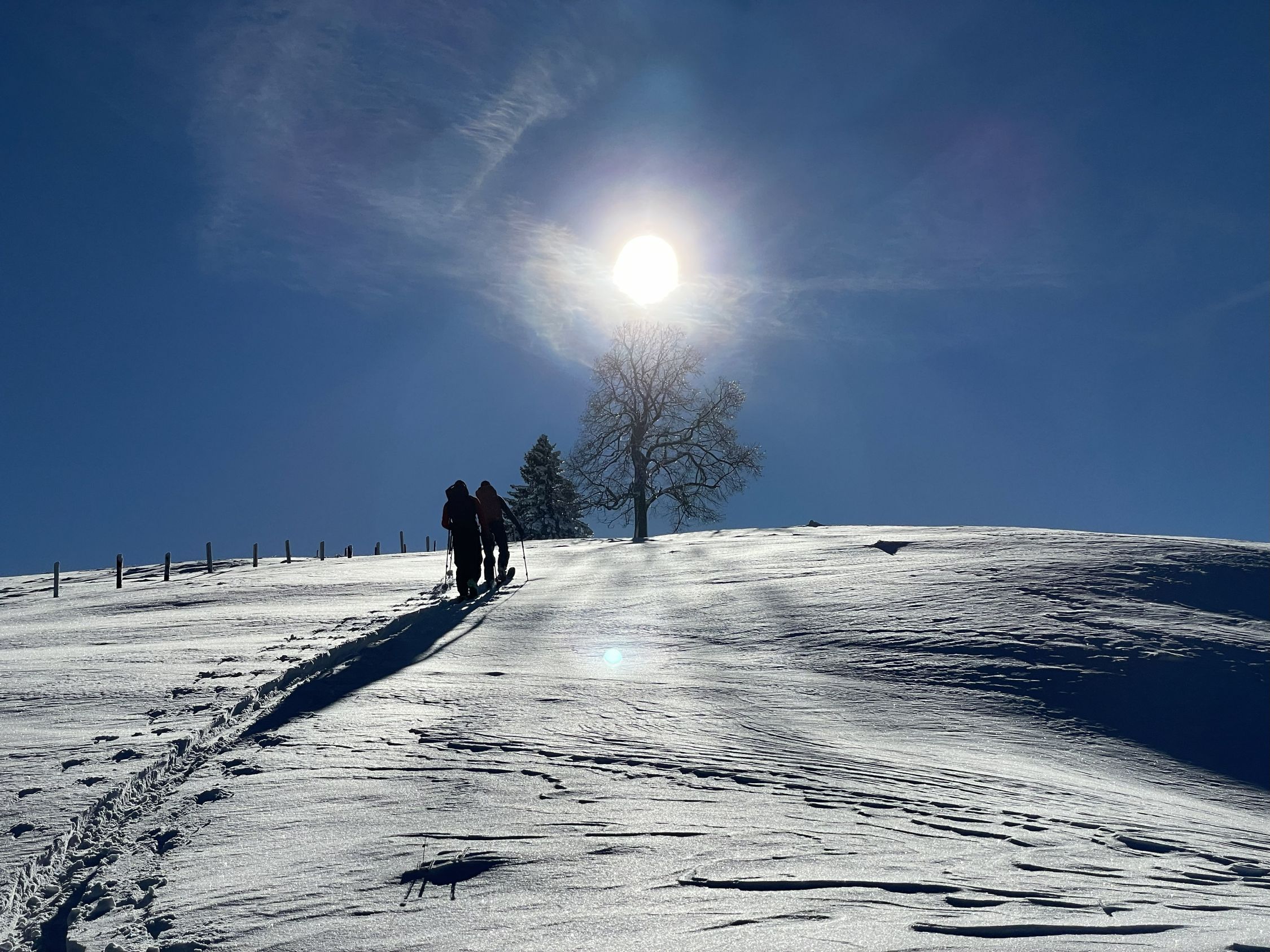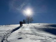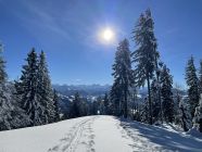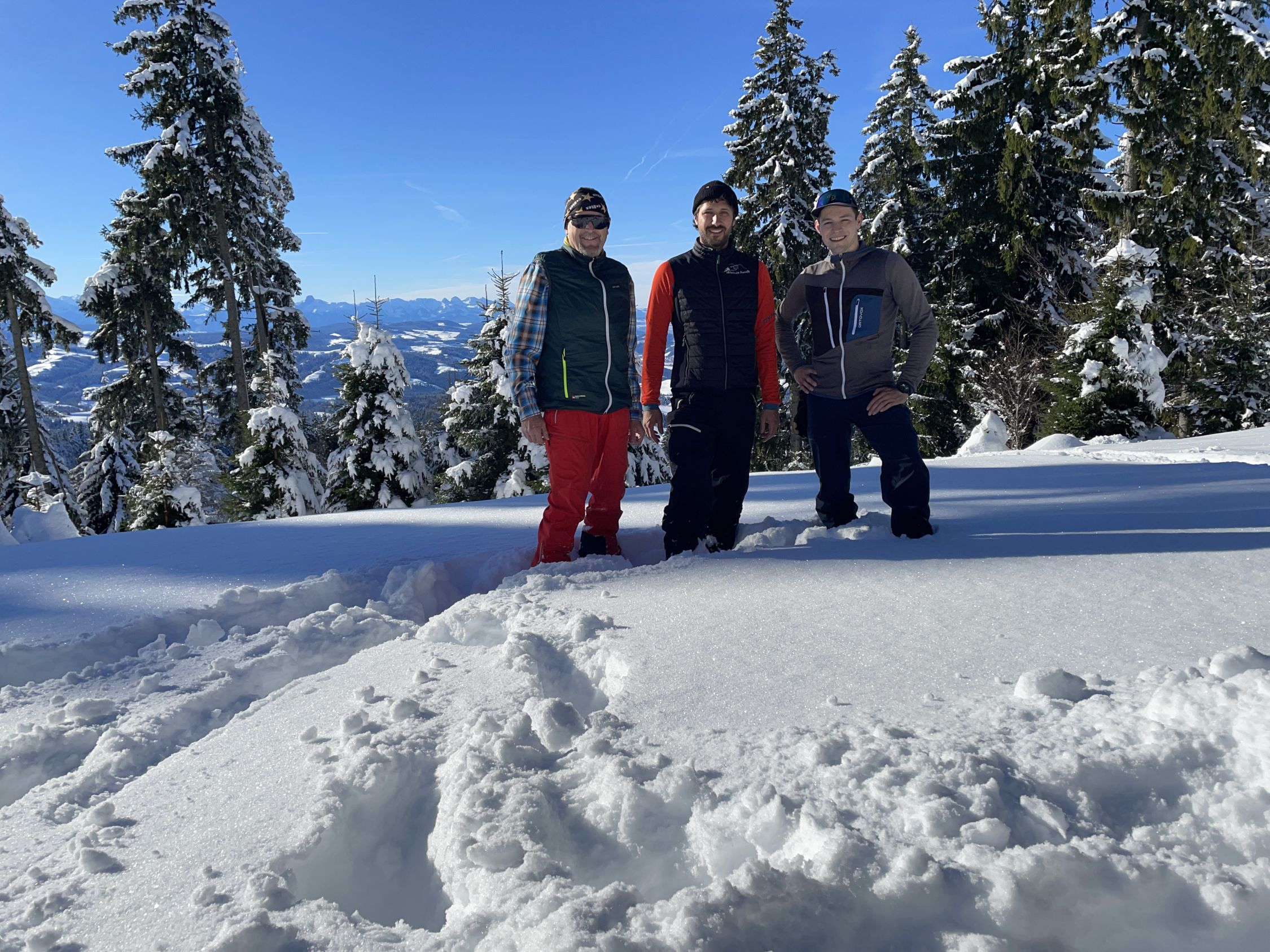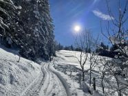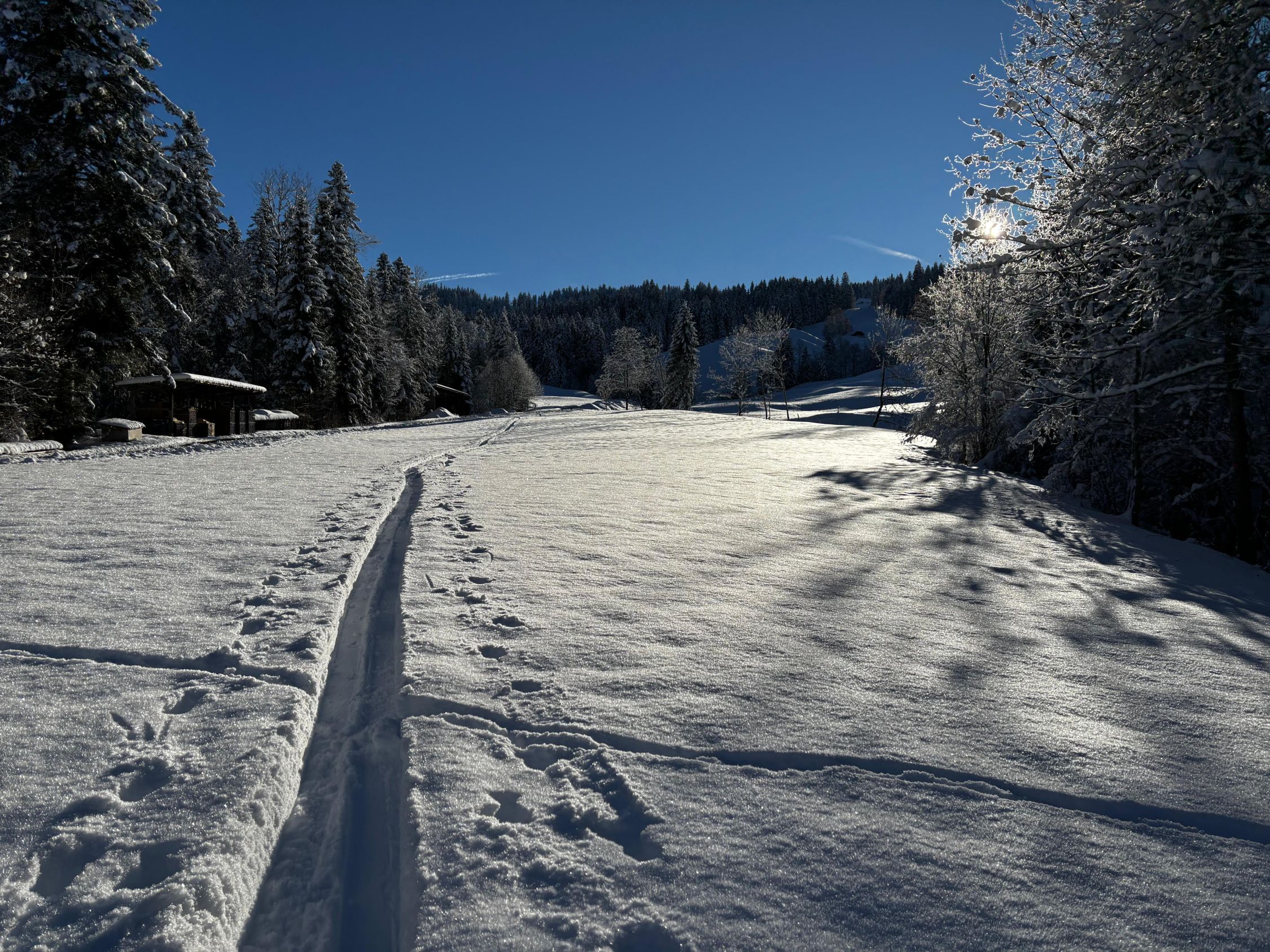 Schnee: beste Bedingungen 30-40cm Pulver auf teilweise guter Unterlage, kein Boden- bzw. Steinkontakt, einzig bei der kurzen Walddurchquerung oberhalb Erlenmoos(Ski tragen), beim Aufstieg über die Strässchen teilweise Ski tragen(Schwarzräumung = für die Einheimischen sicher sehr gut, für Türeler leider weniger)