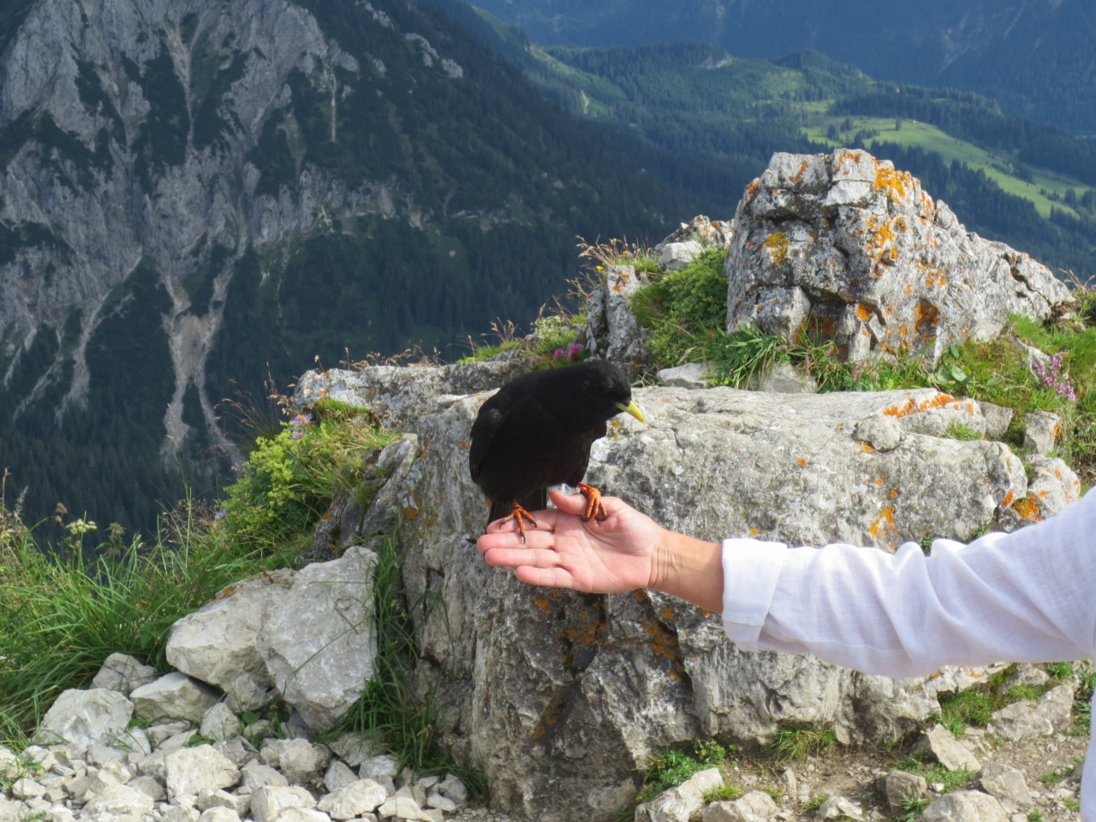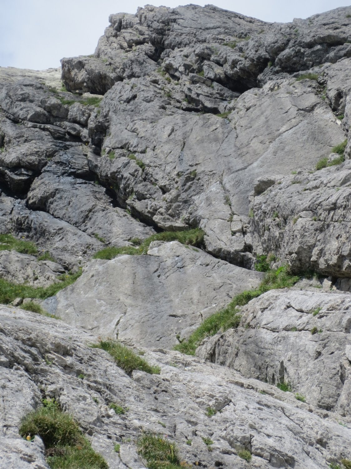 An der Hütte vorbei dem Weg Richtung Aggenstein folgen. Nach ca. 10min, bei der ersten Serpentine den Weg nach links verlassen und durch steile Wiesen unter die plattige Südwand queren. (ca. 15min).
