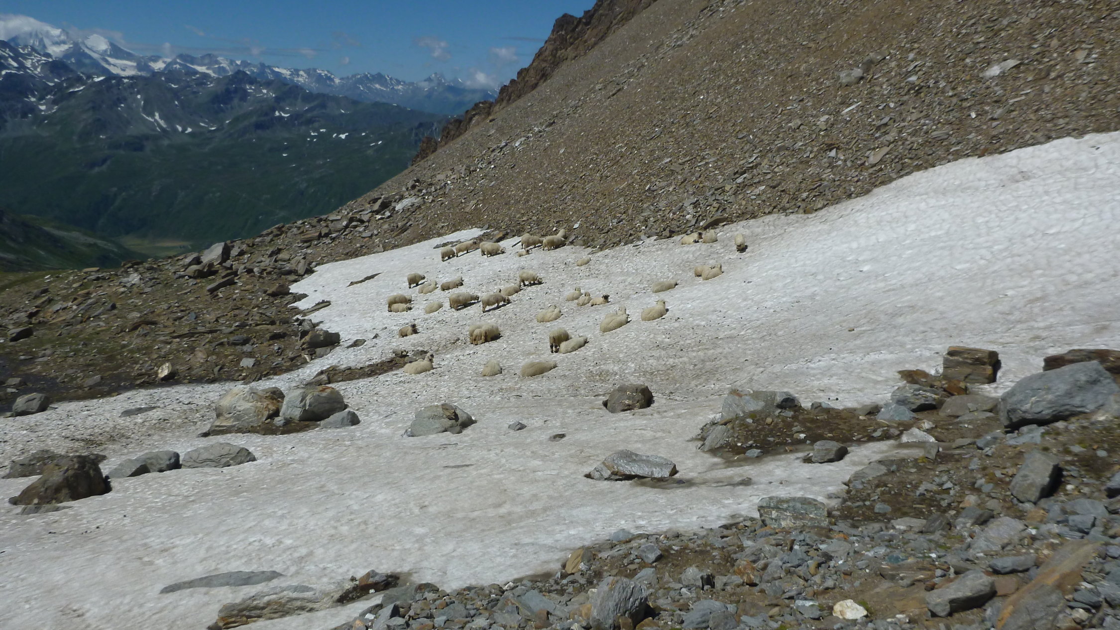 Furggubäumlicke auf walliser Seite noch etwas Schnee, aber problemlos.