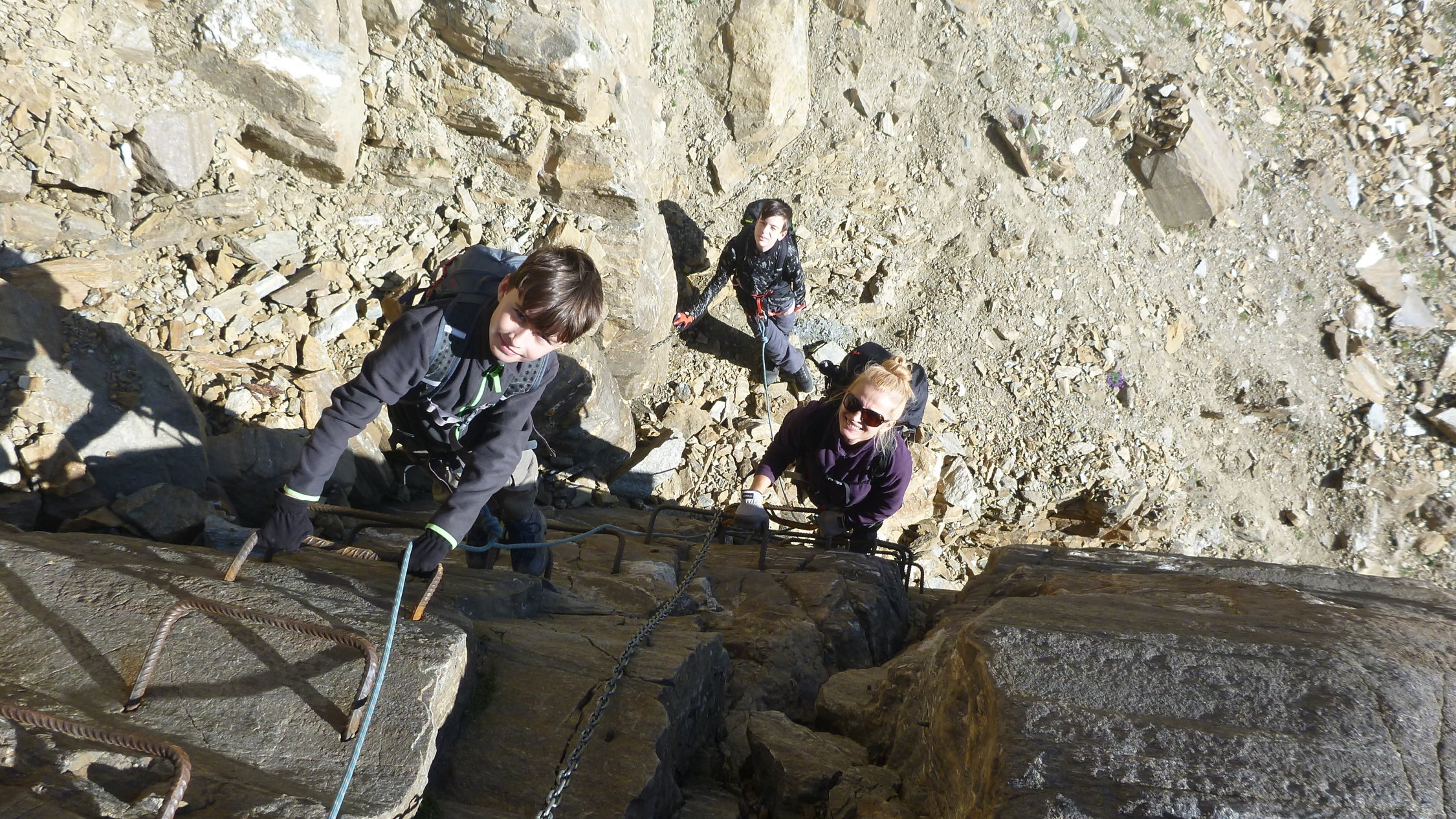 Es gab sehr wenig Informationen zu diesem Übergang. Es hat sich aber durchwegs gelohnt, obwohl wir als Familie teilweise doch gefordert wurden, nicht zuletzt wegen fehlender Ausrüstung. Ich hatte Klettergurte und ein 15m Seil dabei, zudem 2 Stöcke.