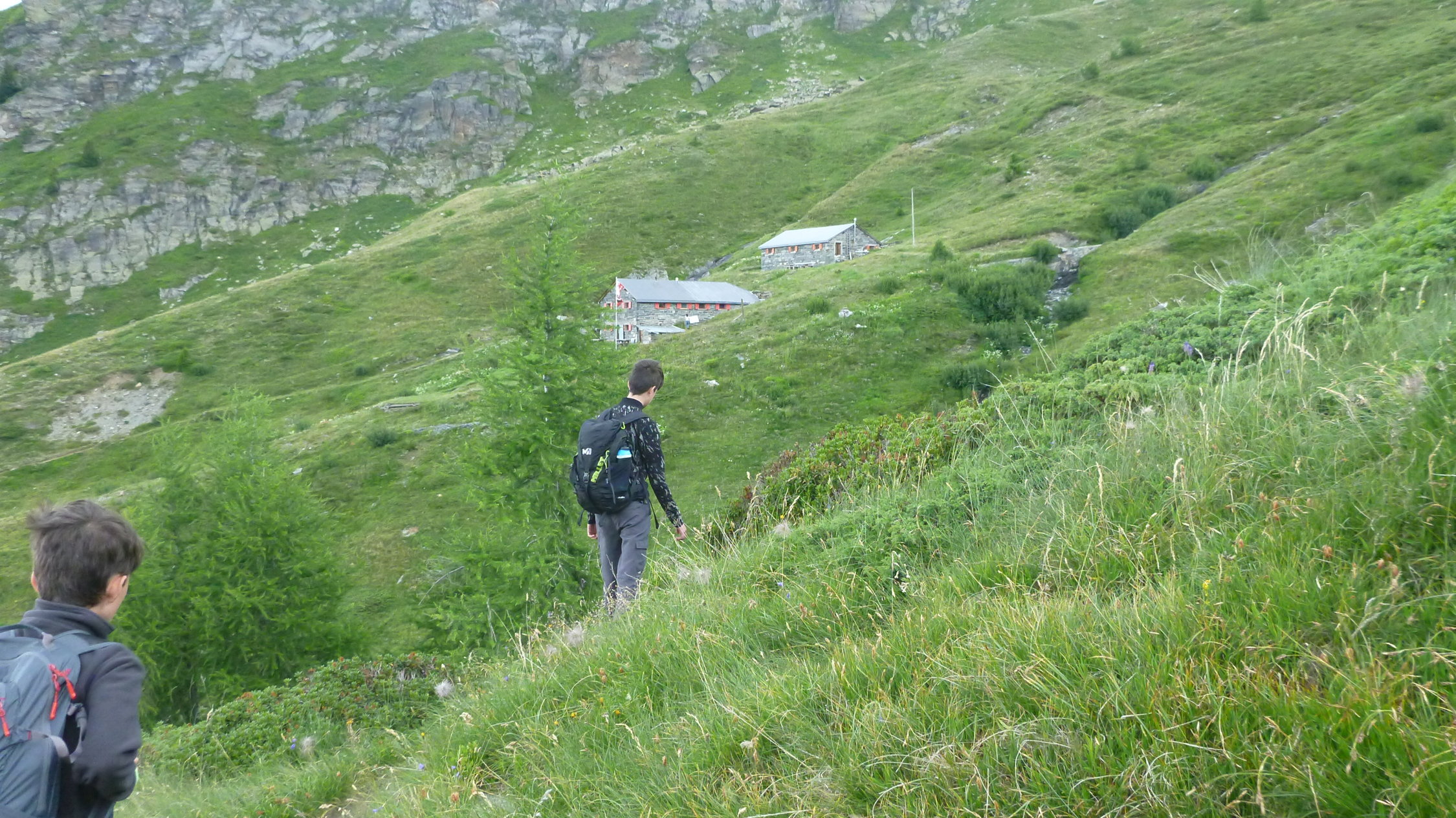 Im Abstieg von der Furggubäumlicke wurde neue Eisentritte und Ketten verlegt. Er ist durchwegs leichter als der Chaltwasserpass. Zurzeit gibt es aber auch noch Schneefelder, bei denen ein Ausrutscher nicht sehr gut wäre. Auch hier empfiehlt sich ein kurzes Seil für die Sicherung der Kinder. Wir haben es nicht benötigt.
