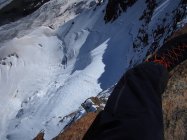 Abstieg / Traversierung auf den finalen Schneegrat erfordert dann nochmal gute Konzentration.