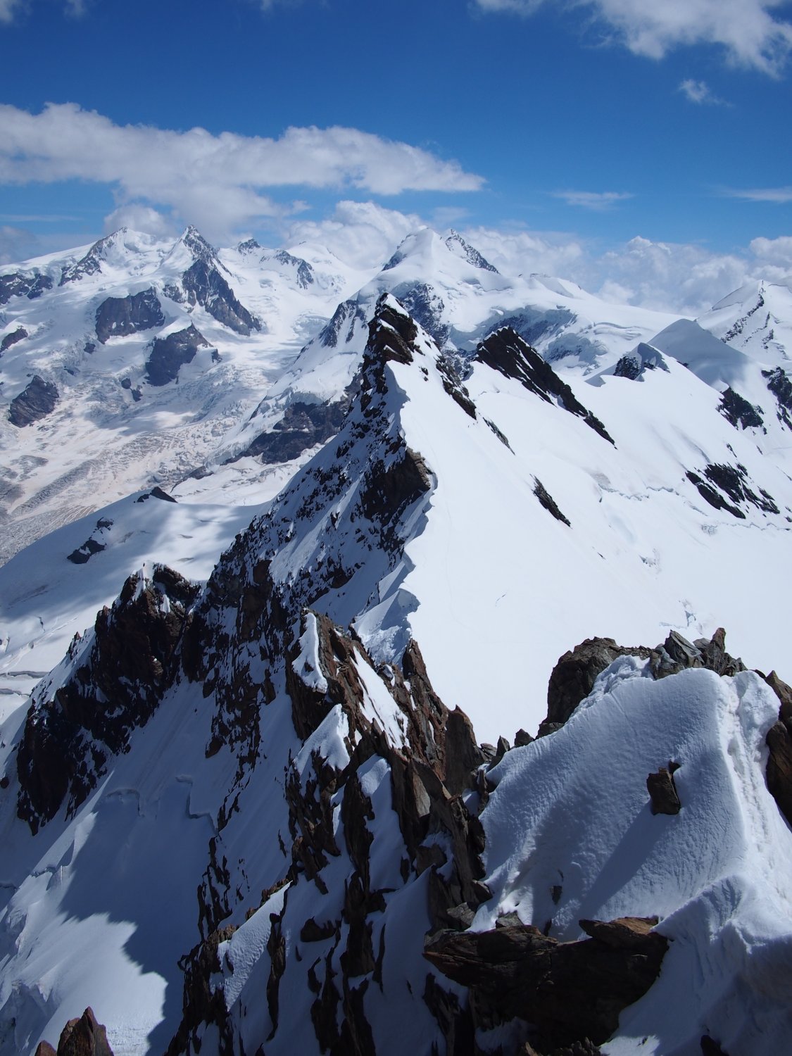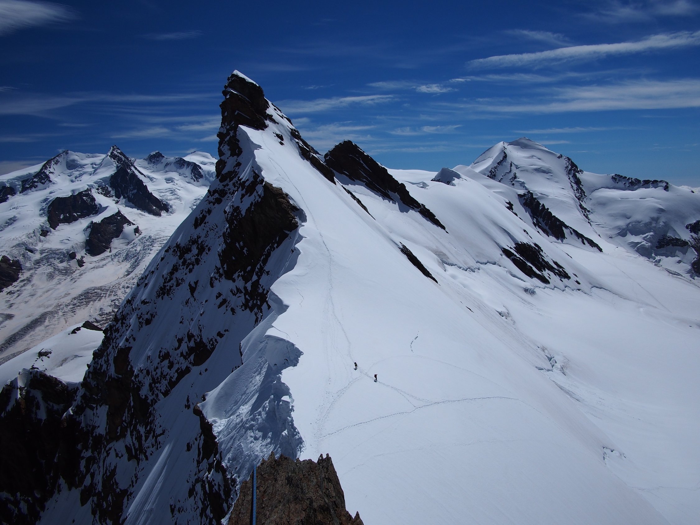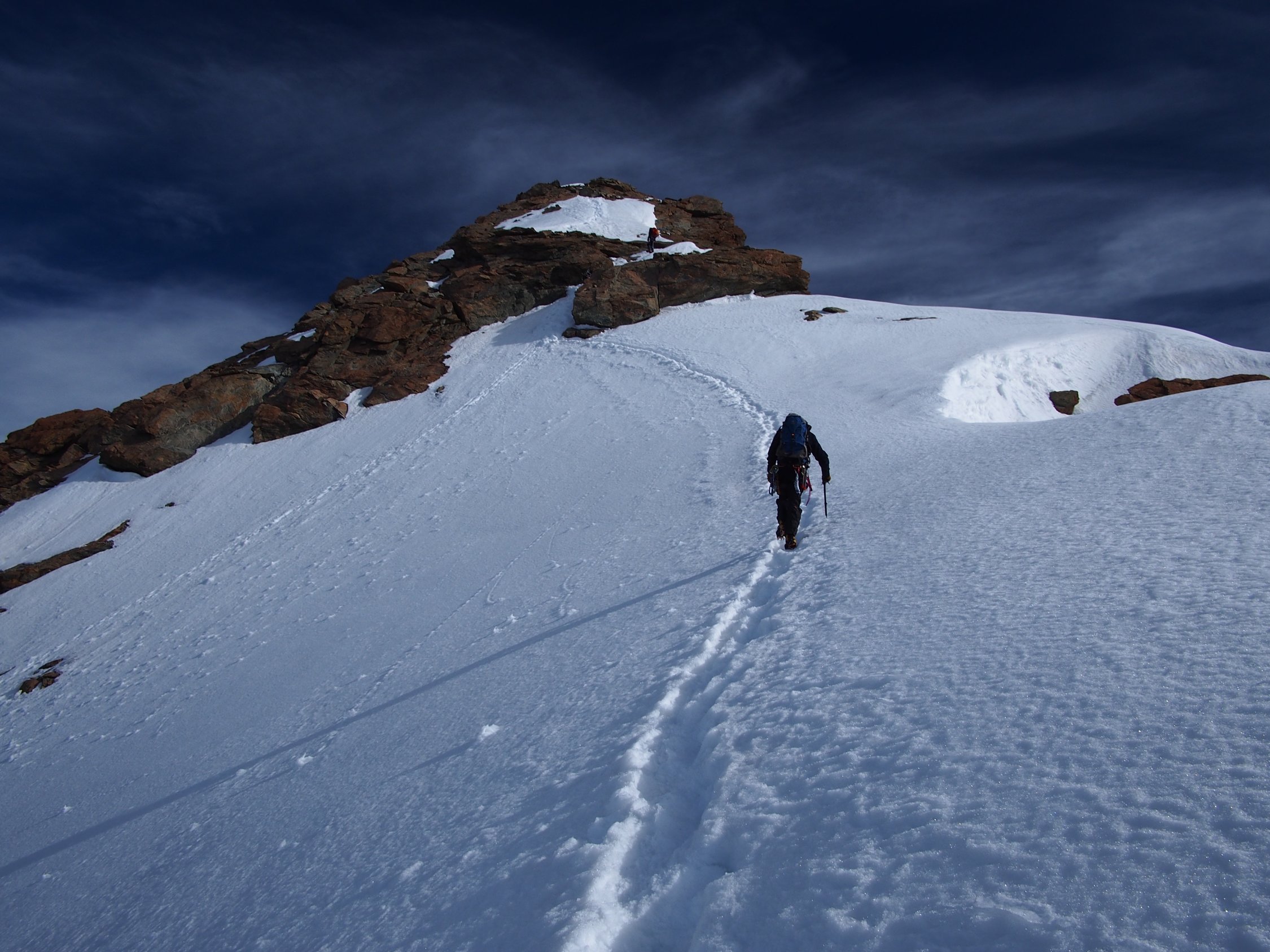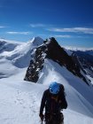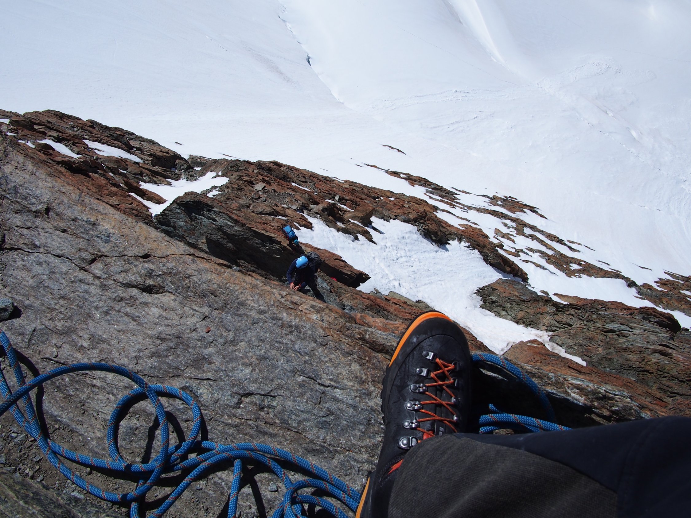 Steigeisen-freies Klettern ab Fels des Mittelgipfels bis fast zum finalen Schneegrat.