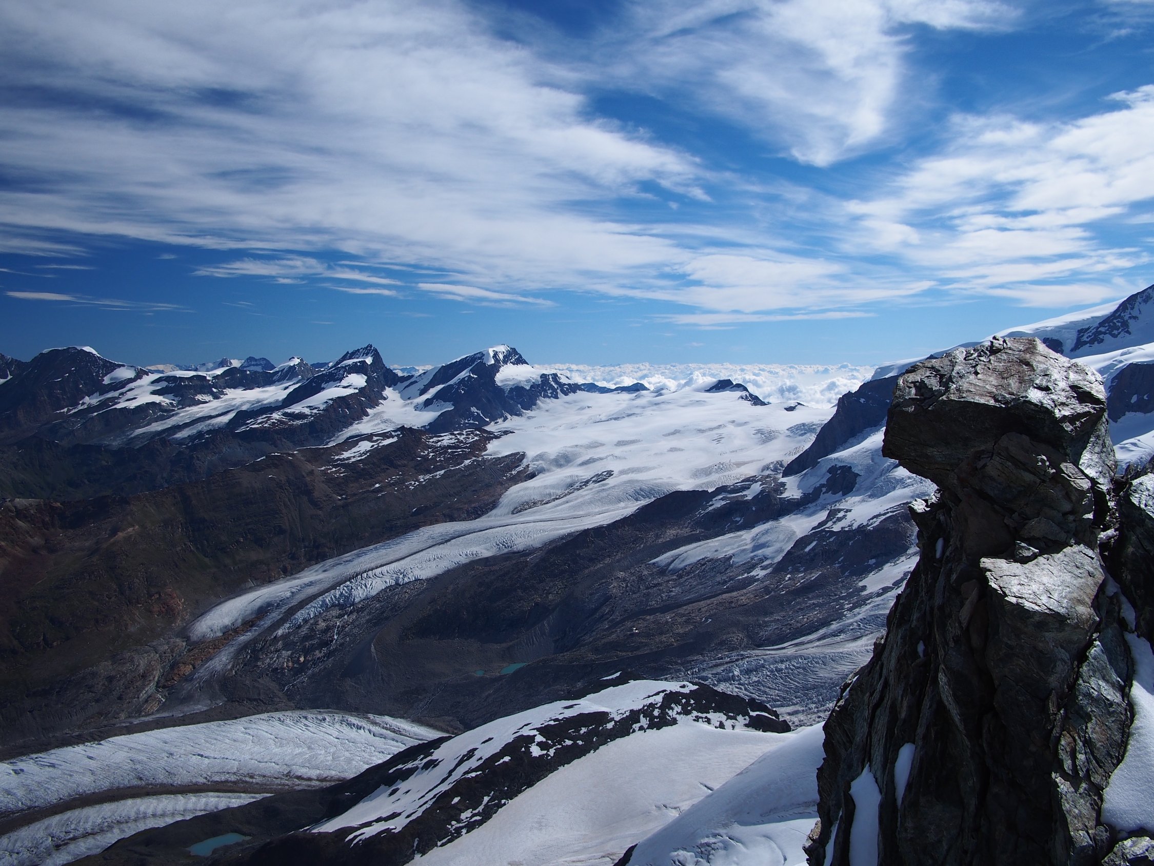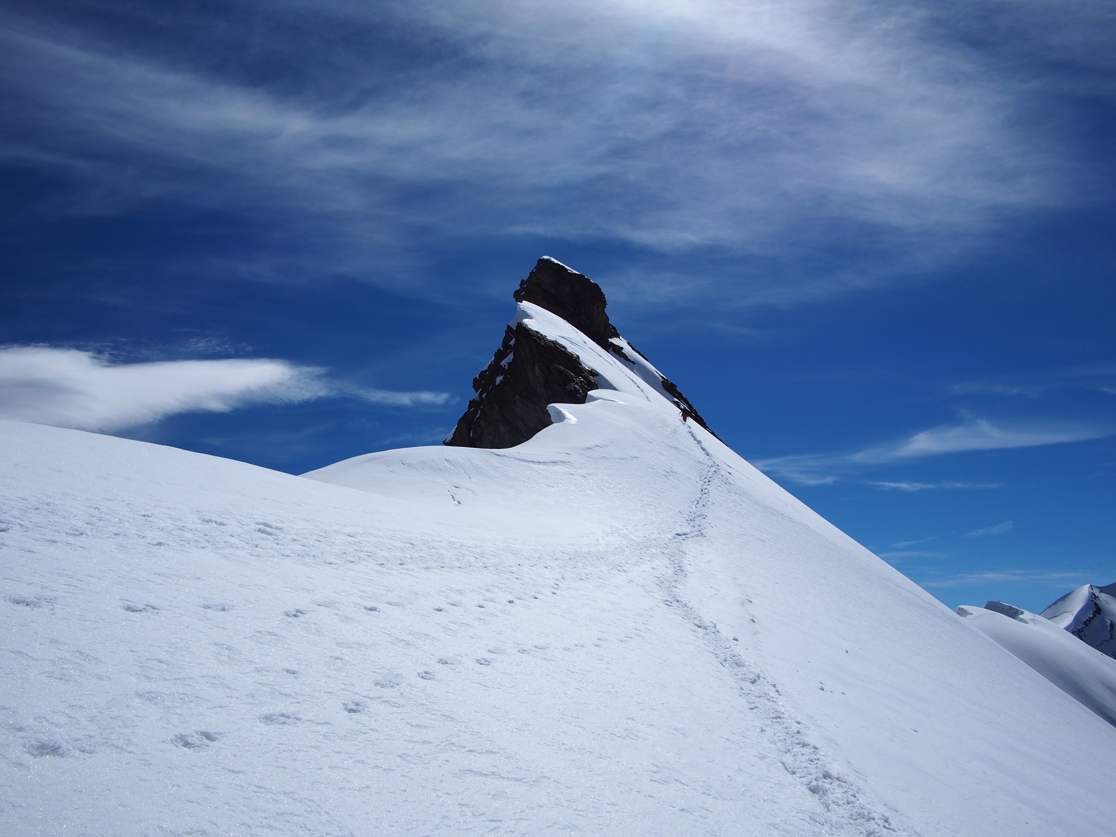 Spurlage an den Wächten von der Roccia-Nera bis zum Zwilling-Ost mitunter etwas abenteuerlich -